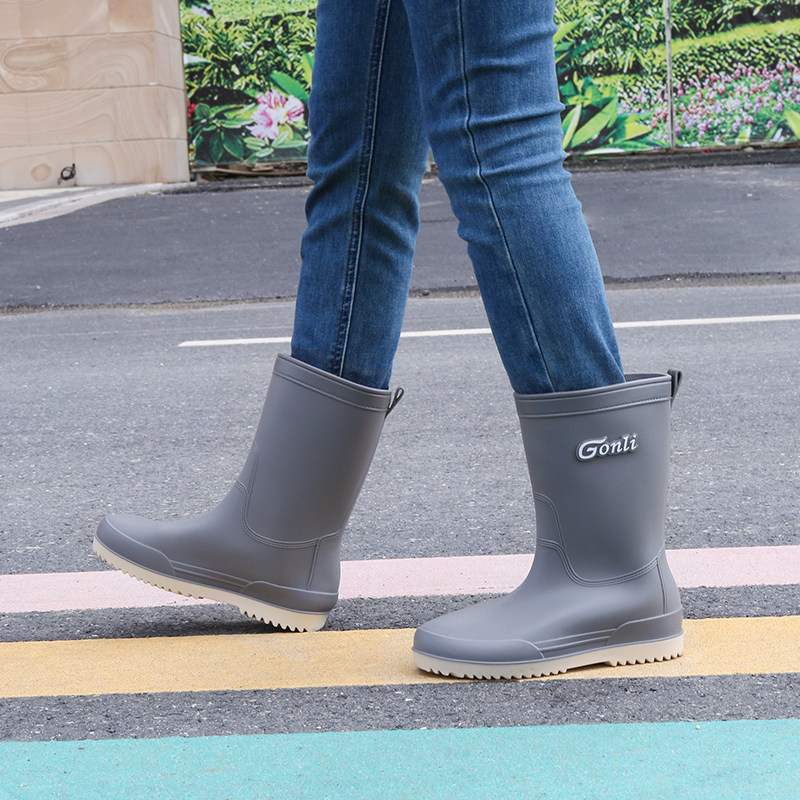 喆星日系韩版女士雨鞋时尚中筒户外成人雨靴加绒保暖水靴防滑水鞋