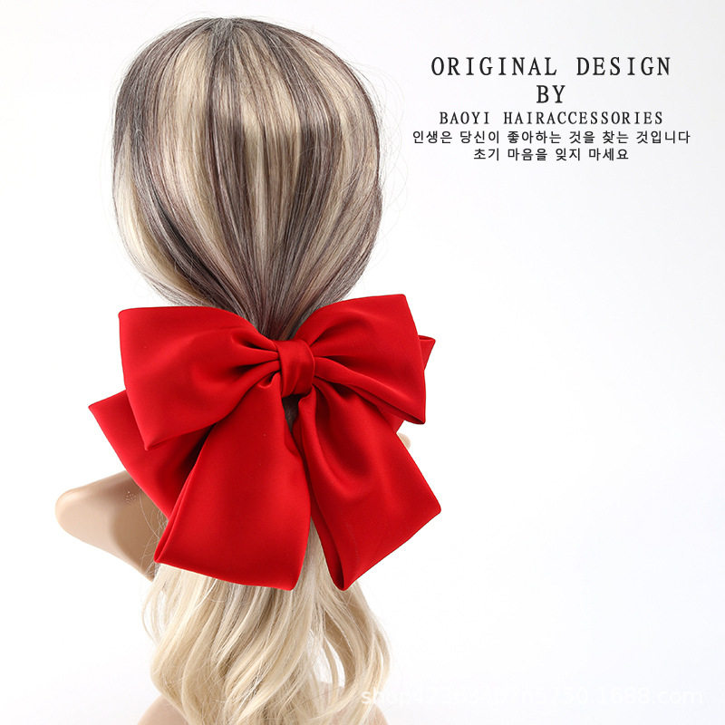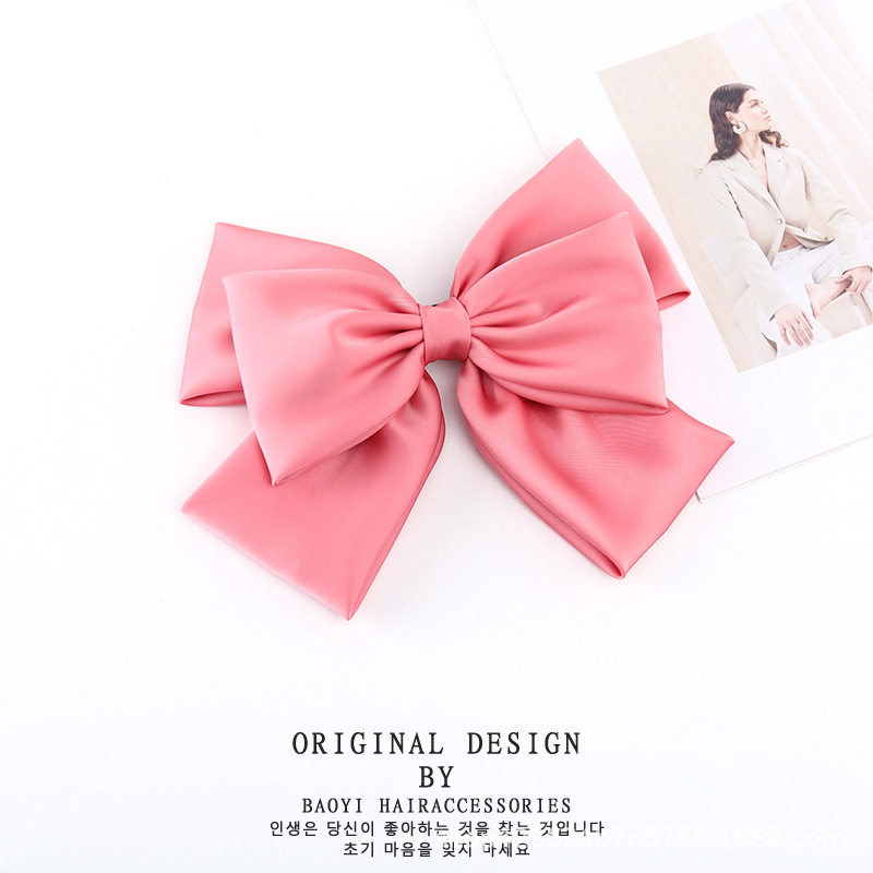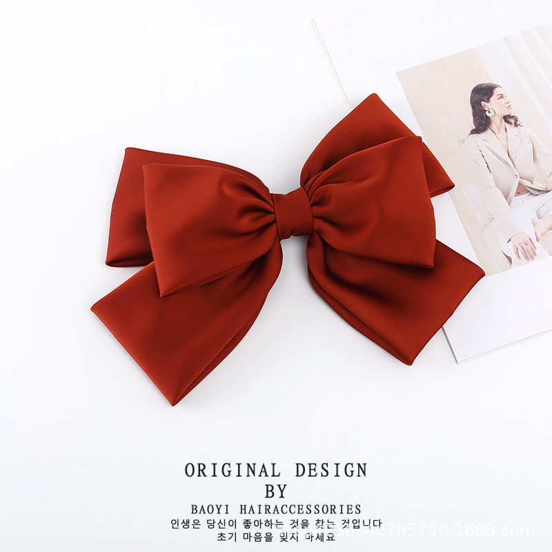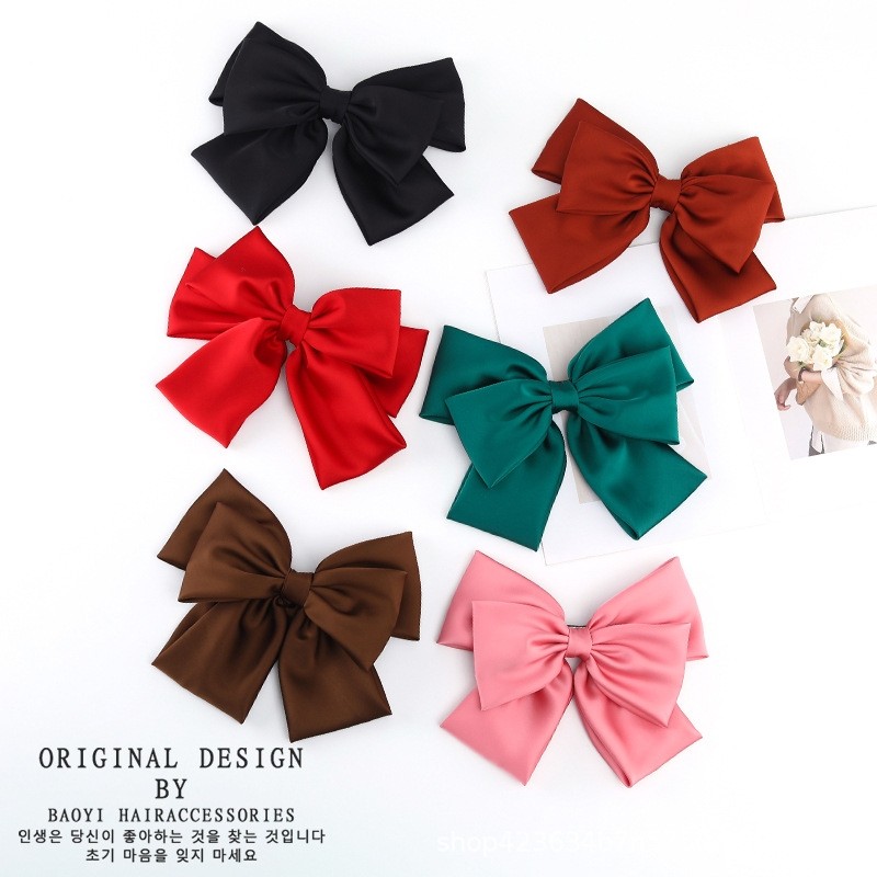 高级感新款缎面大蝴蝶结发夹简约韩式弹簧夹优雅少女风后脑勺发饰