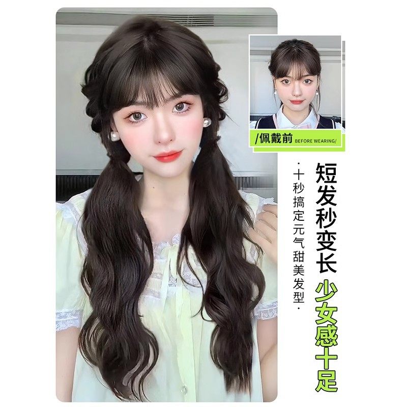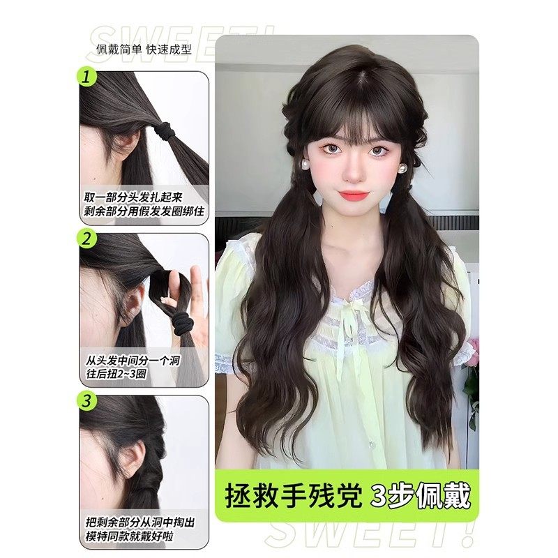 假发马尾辫子女长发自然仿真人绑带式双马尾假发片可扎低短发蓬松
