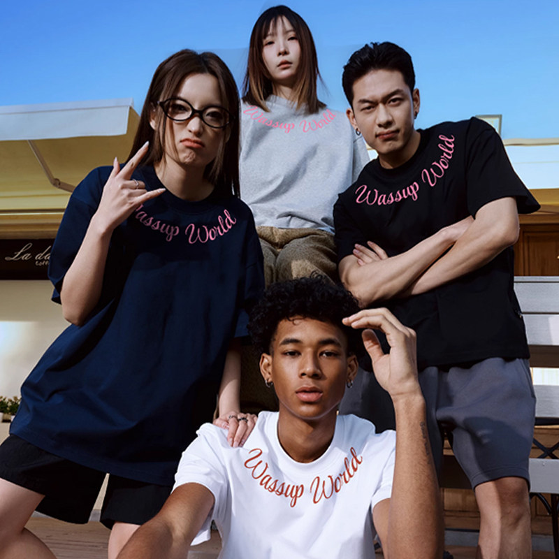 WASSUP 夏季短袖重磅美式男女同款休闲宽松国潮牌T恤上衣体恤纯棉