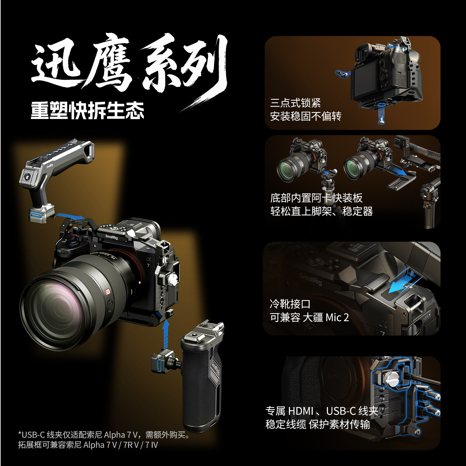 斯莫格适用索尼A7M5相机全包兔笼迅鹰快拆拓展框微单线夹配件摄影L型底板A7R5 A7M4手持摄像套件相机配件