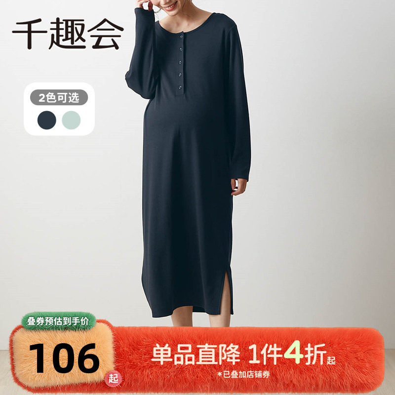 千趣会孕妇装春秋款连衣裙产后方便哺乳装全棉针织时尚孕妈长裙子
