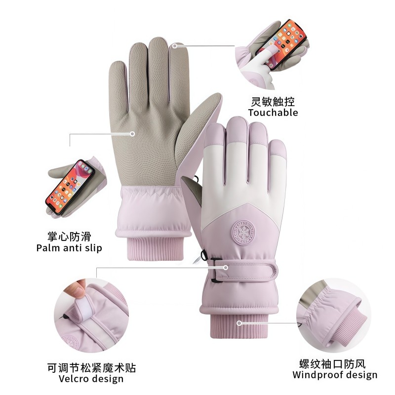 棉滑雪手套男女冬季防水触屏跑步运动骑行登山装备加绒厚保暖防风