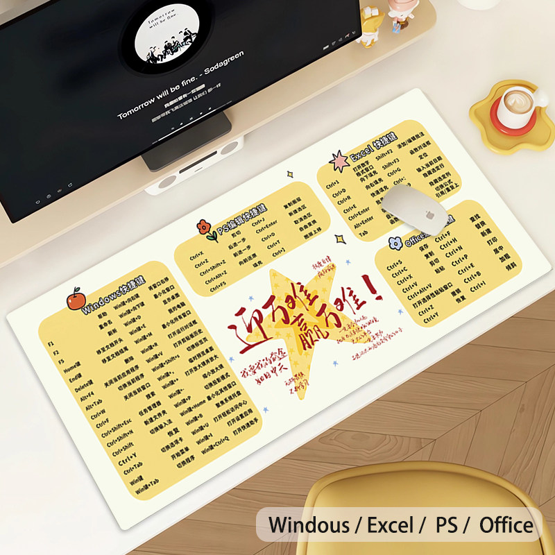 高能量文字快捷键鼠标垫超大笔记本ps垫女生高颜值办公Excel定制