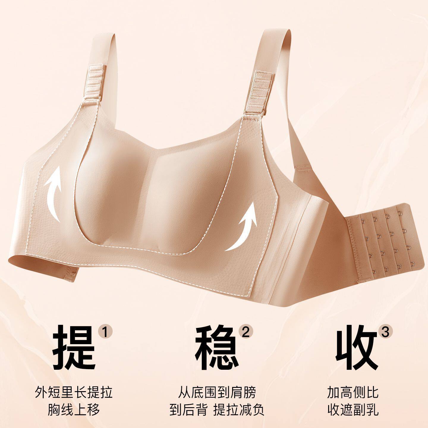 润微提拉内衣女大胸显小无痕提拉防下垂聚拢收副乳胸罩爆款文胸