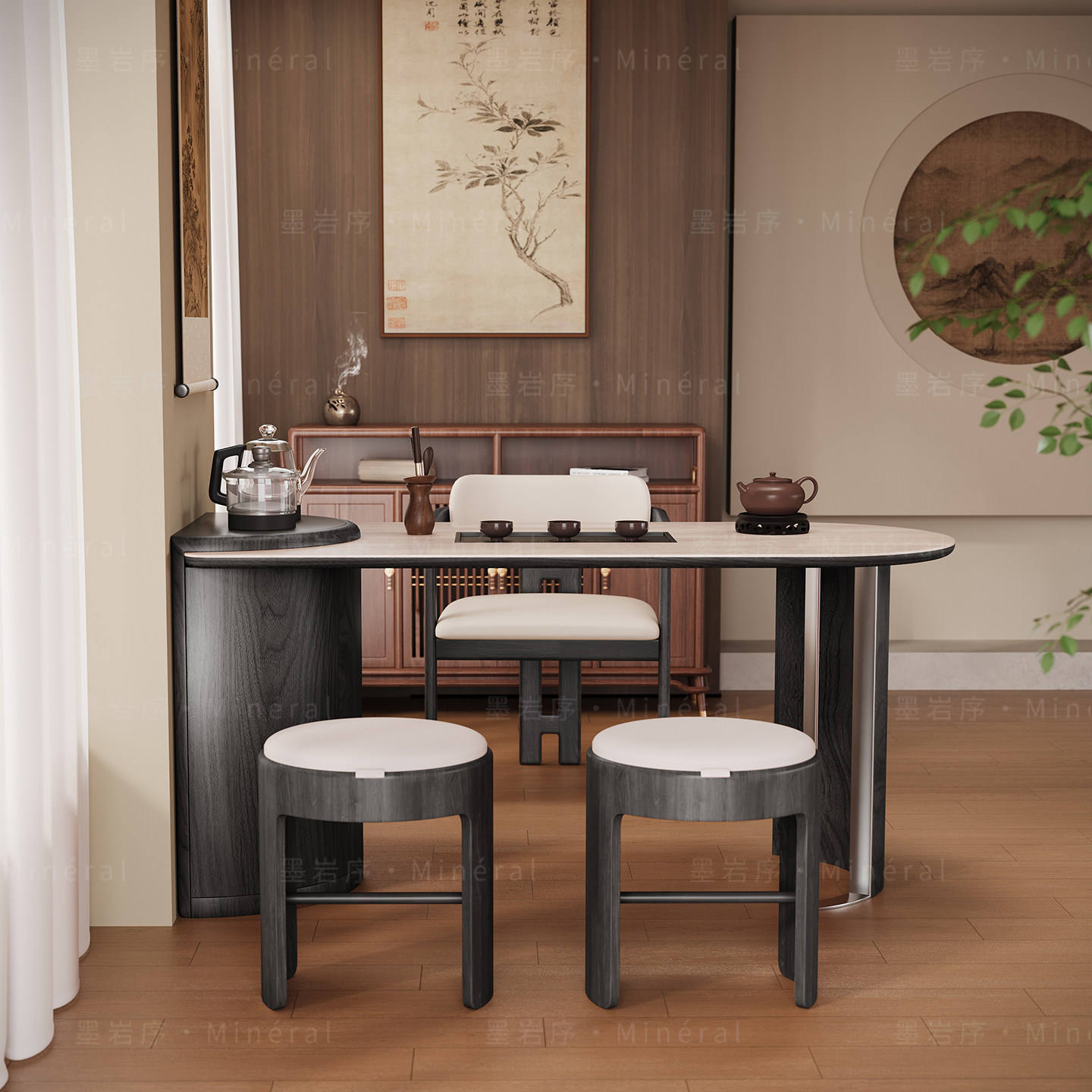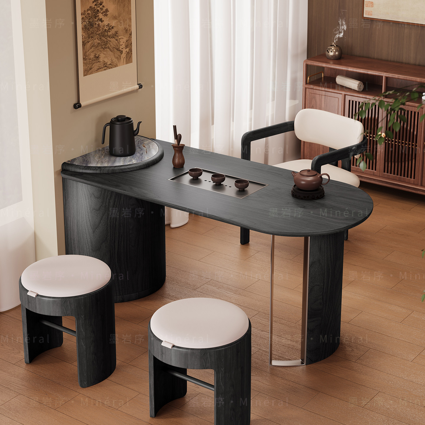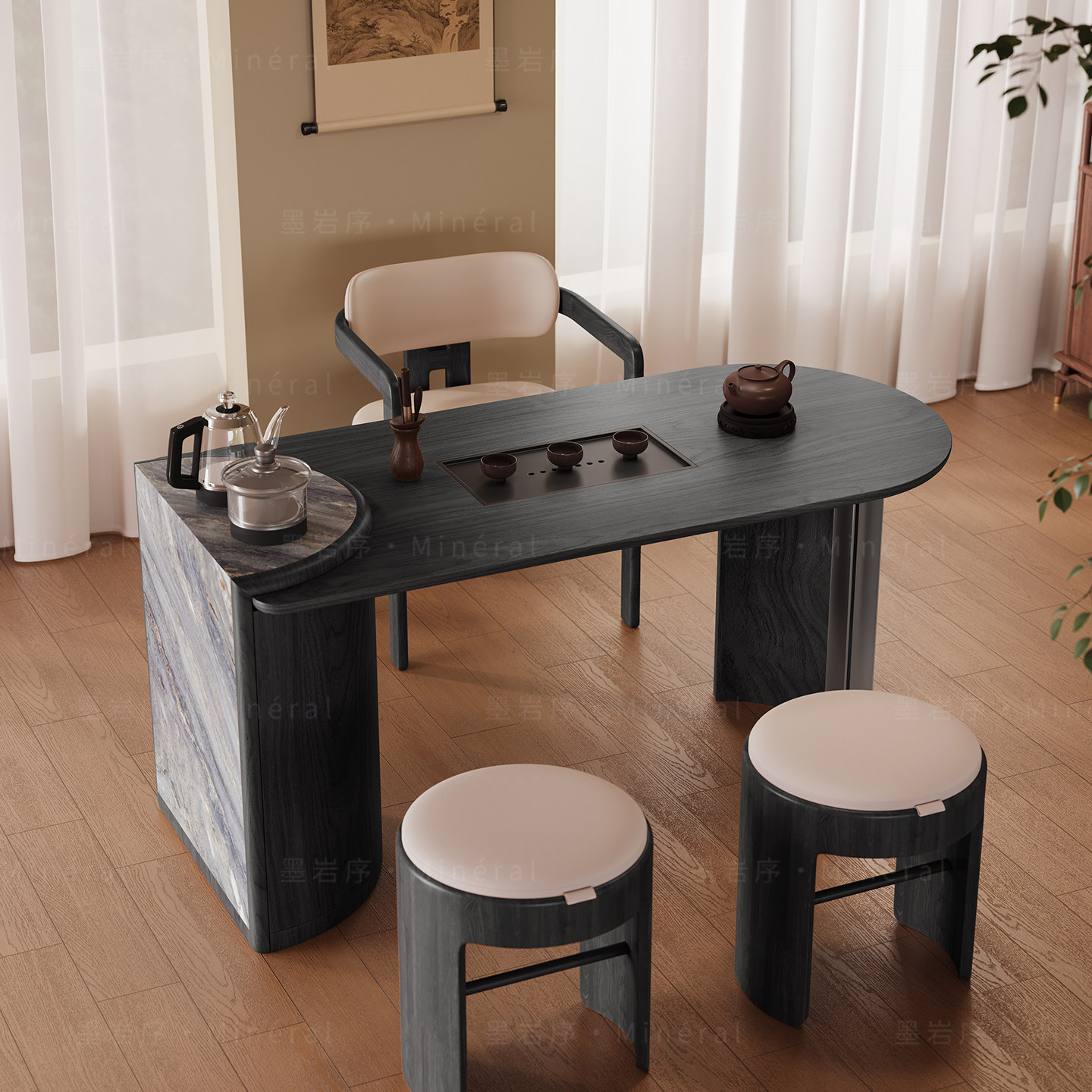 新中式阳台茶桌椅组合现代简约实木白蜡木小户型高端功夫茶台新款