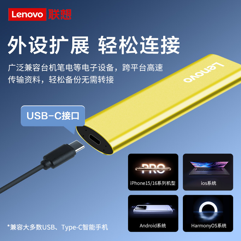 联想移动固态硬盘512G 1T高速2T手机电脑两用外接固态硬盘ZX110