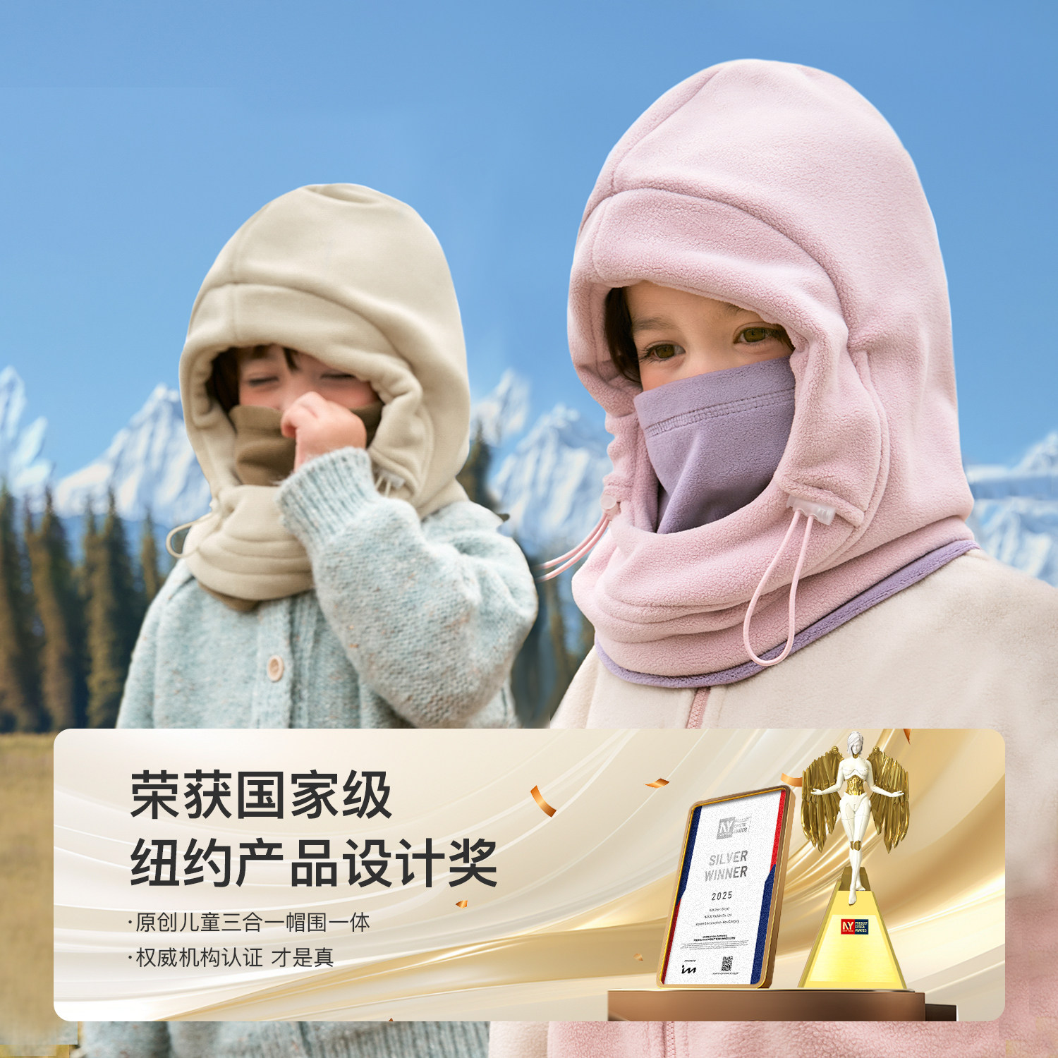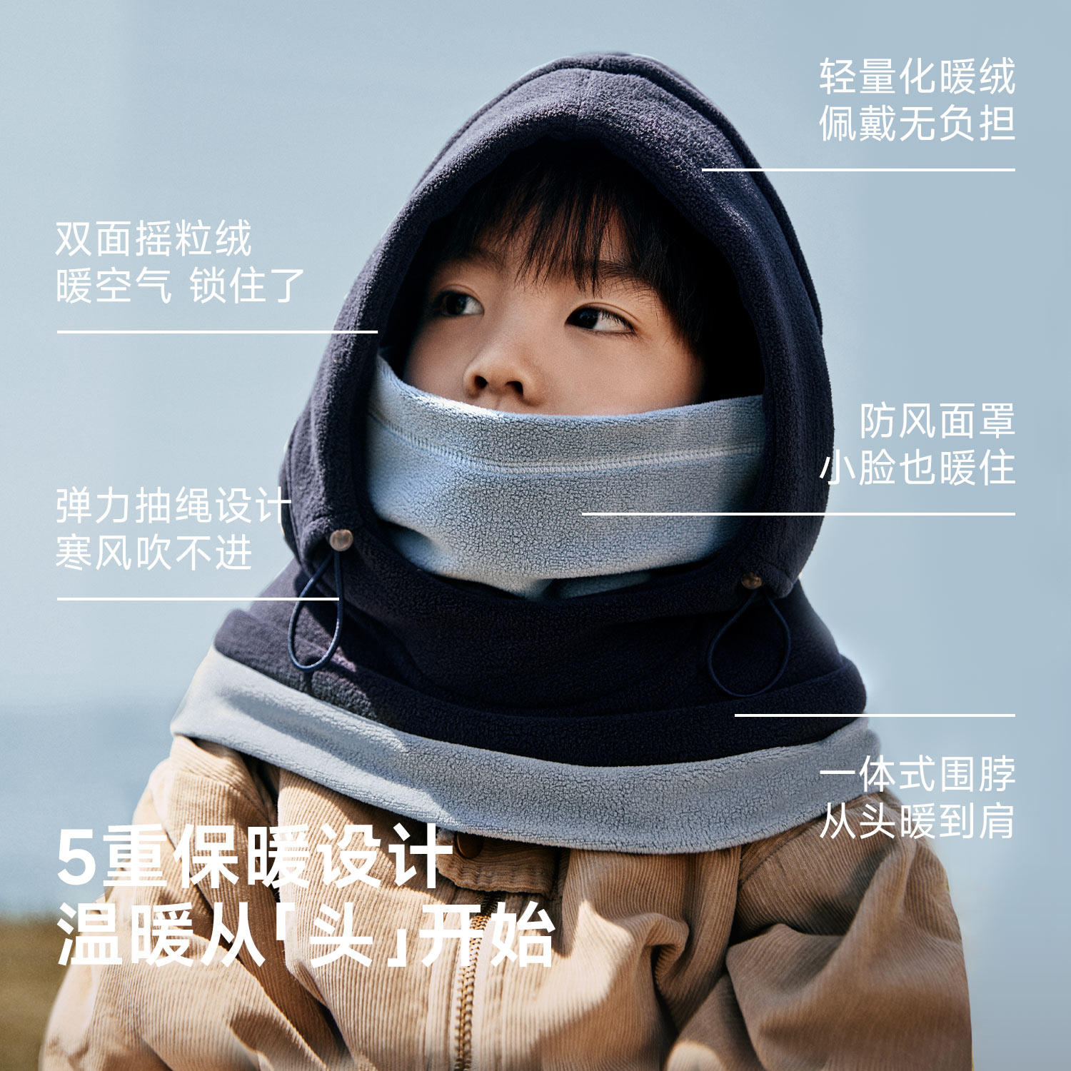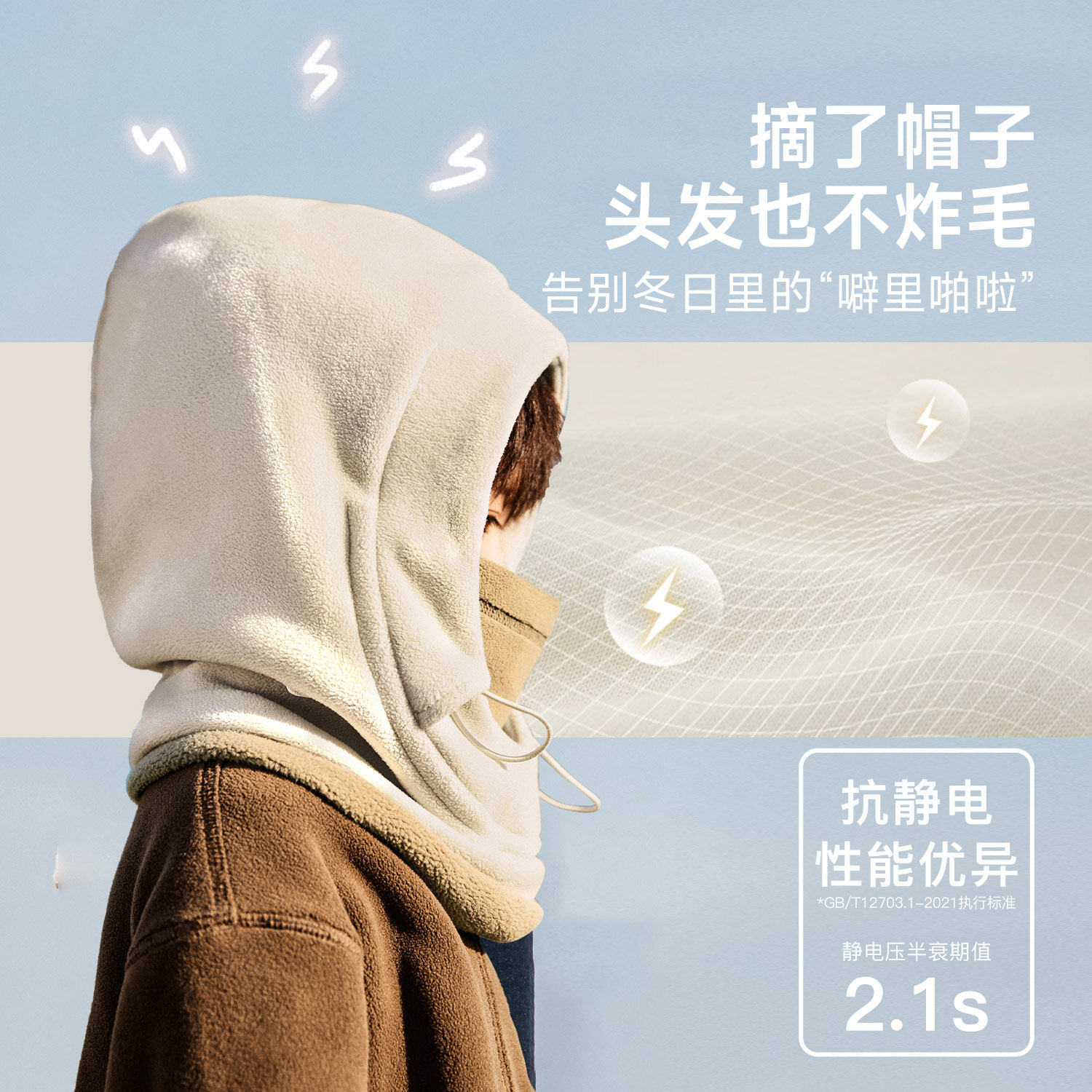帽子围脖面罩三合一,双面摇粒绒锁温更保暖