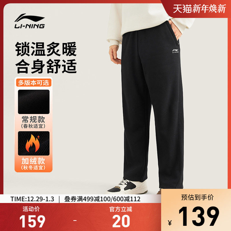 李宁热力裤丨卫裤新款男冬季黑色裤子直筒休闲裤加绒针织运动裤