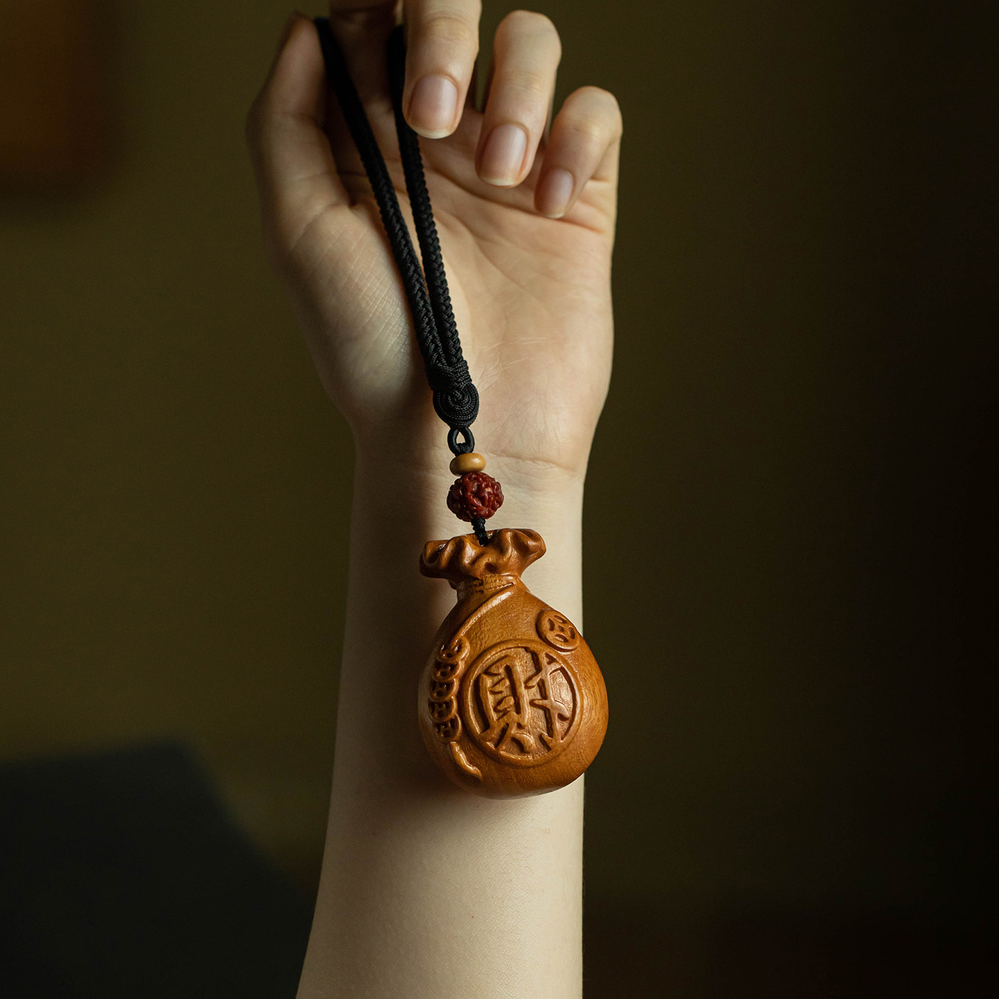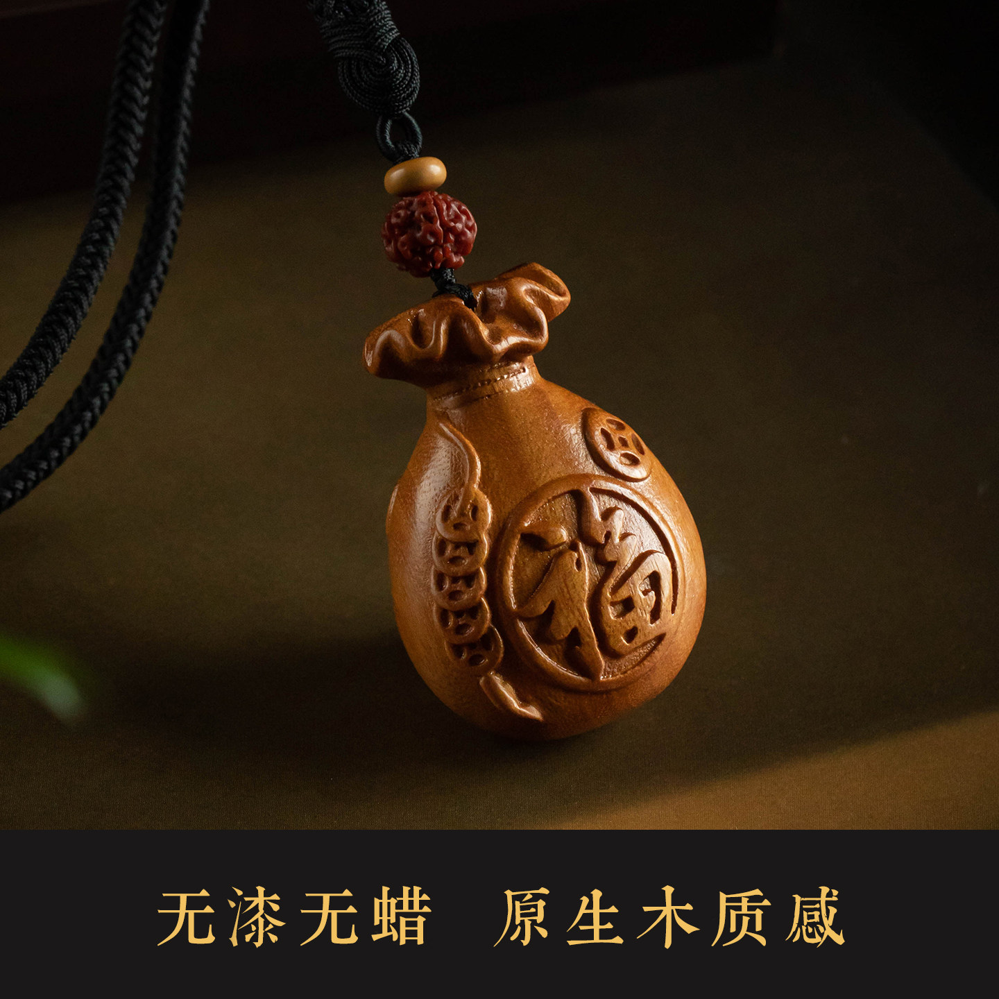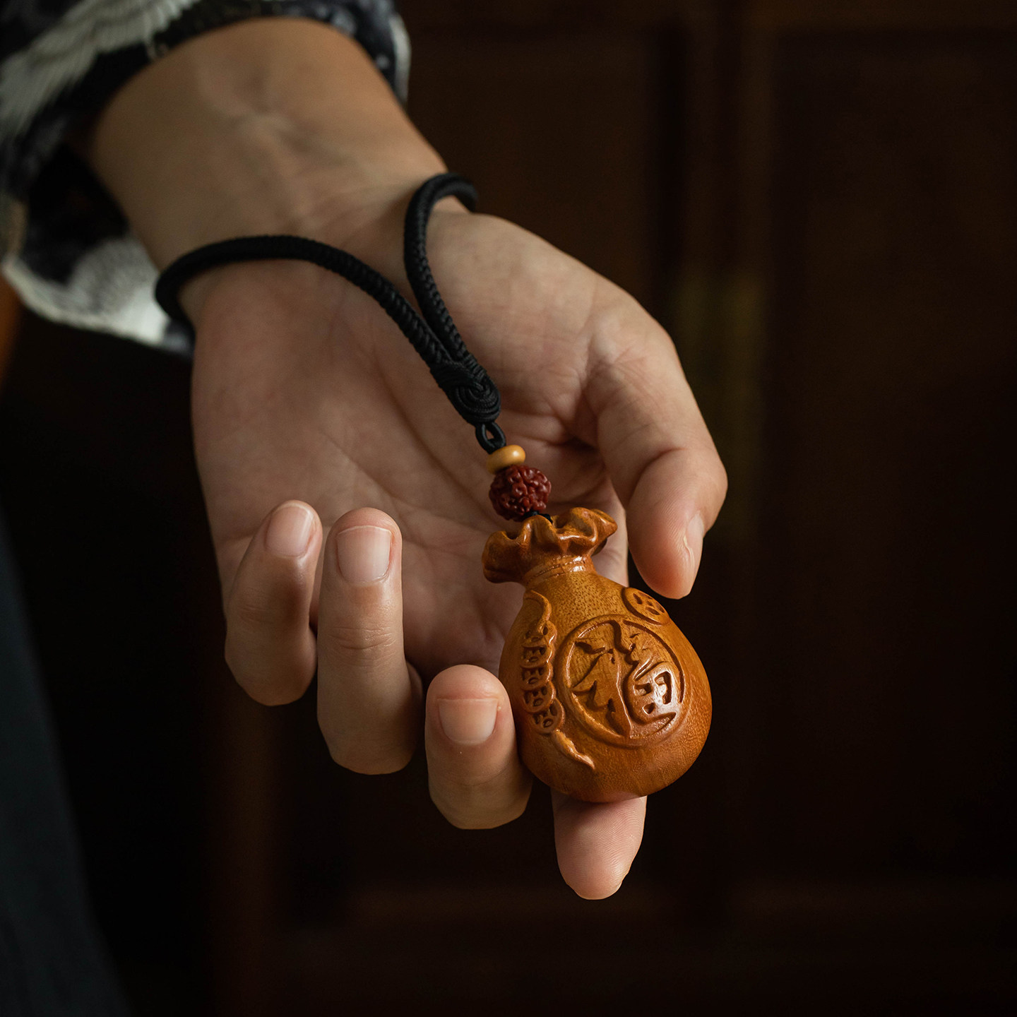 【大师手作】大善堂天然黄杨木福袋手把件文玩木雕随身男女礼挂件