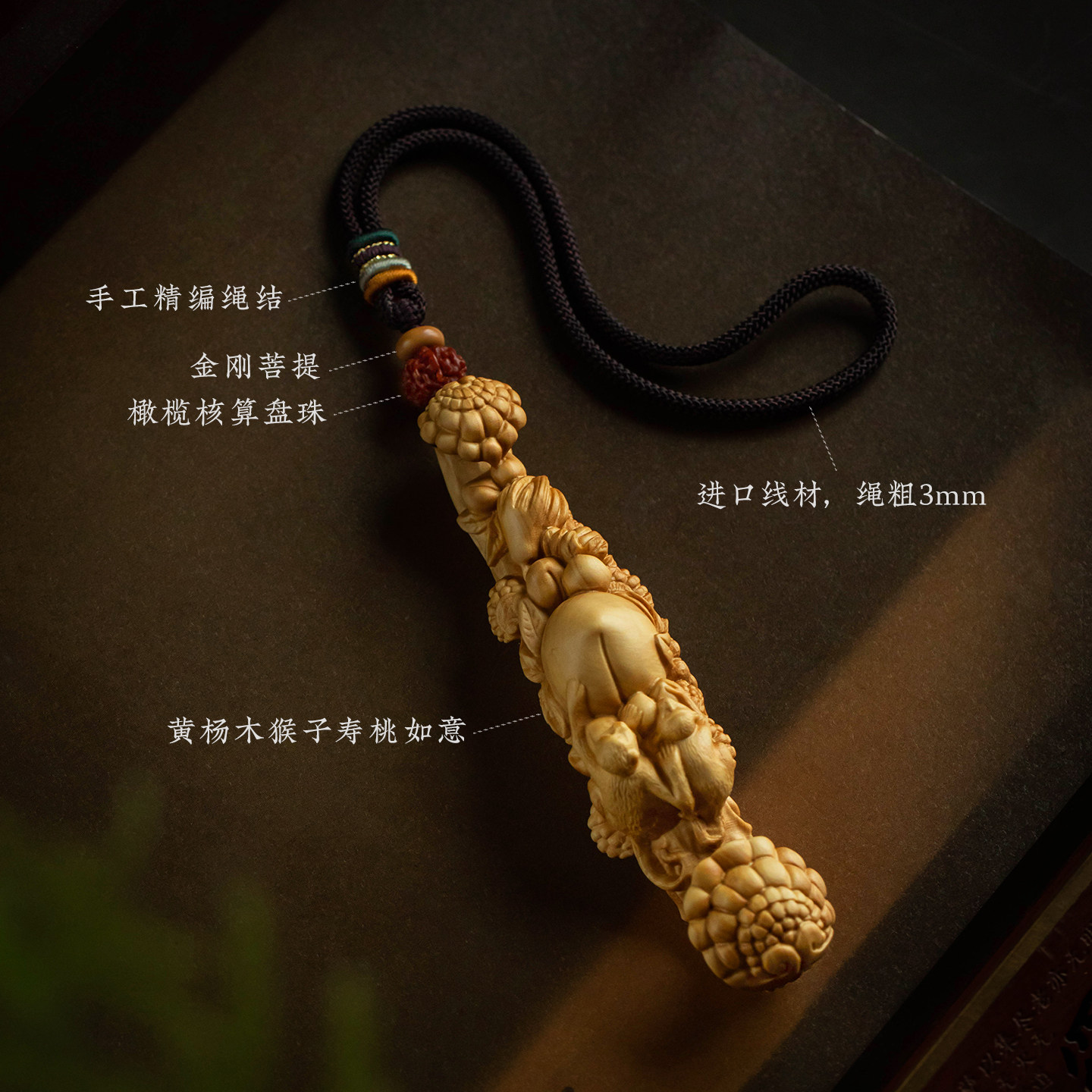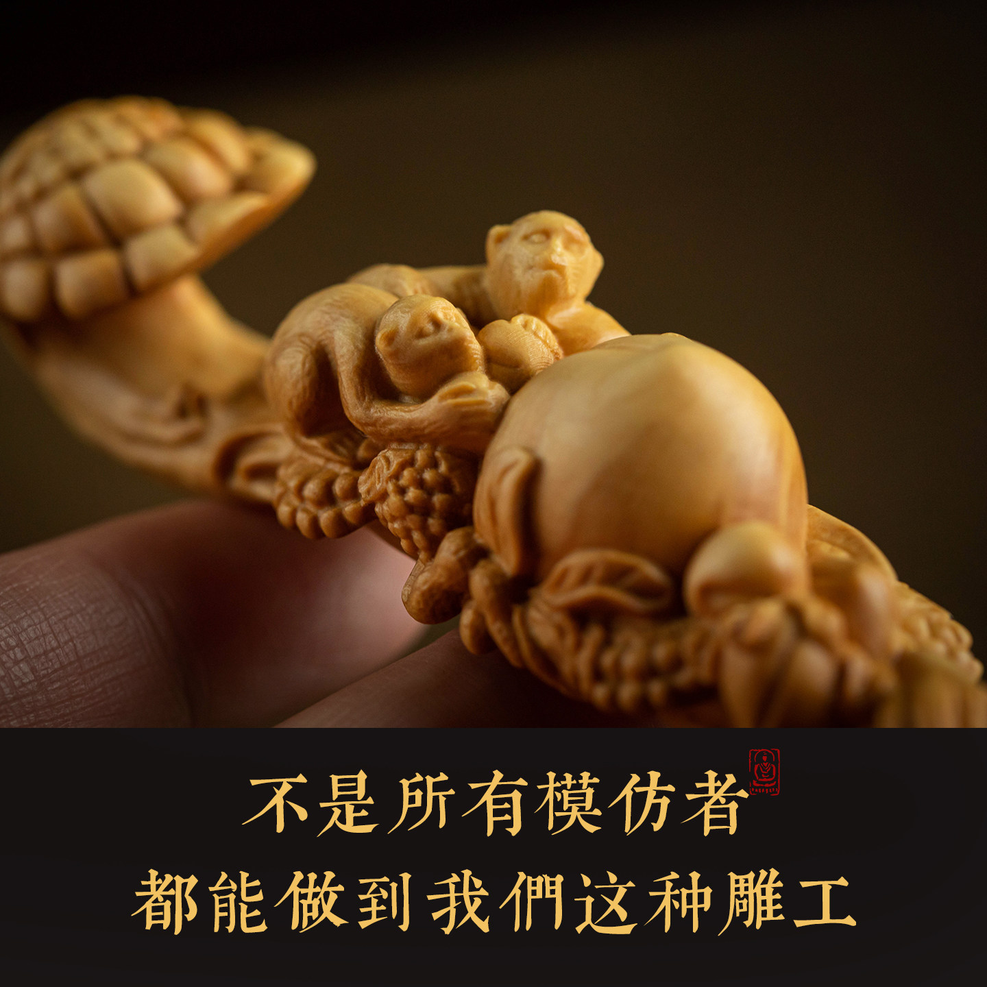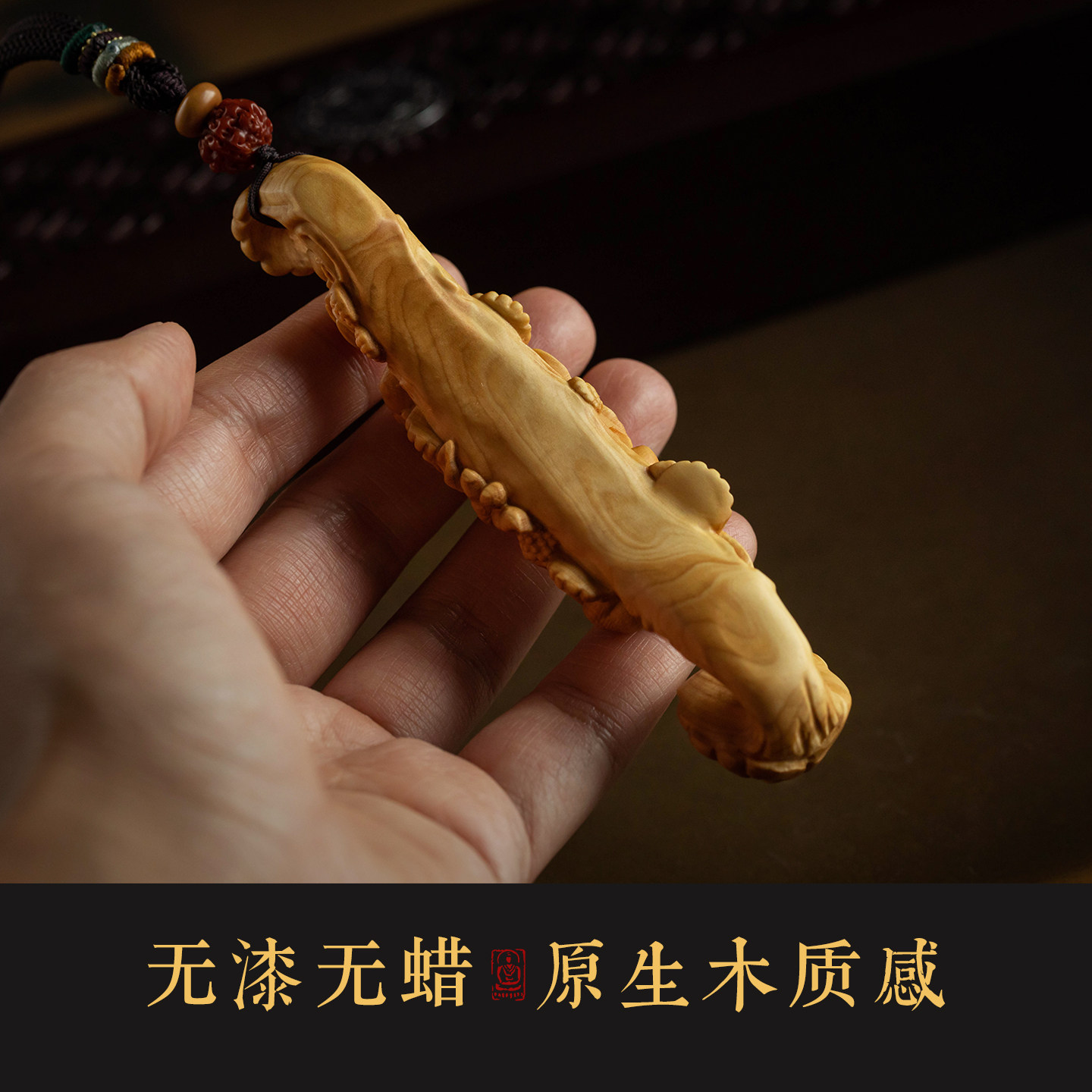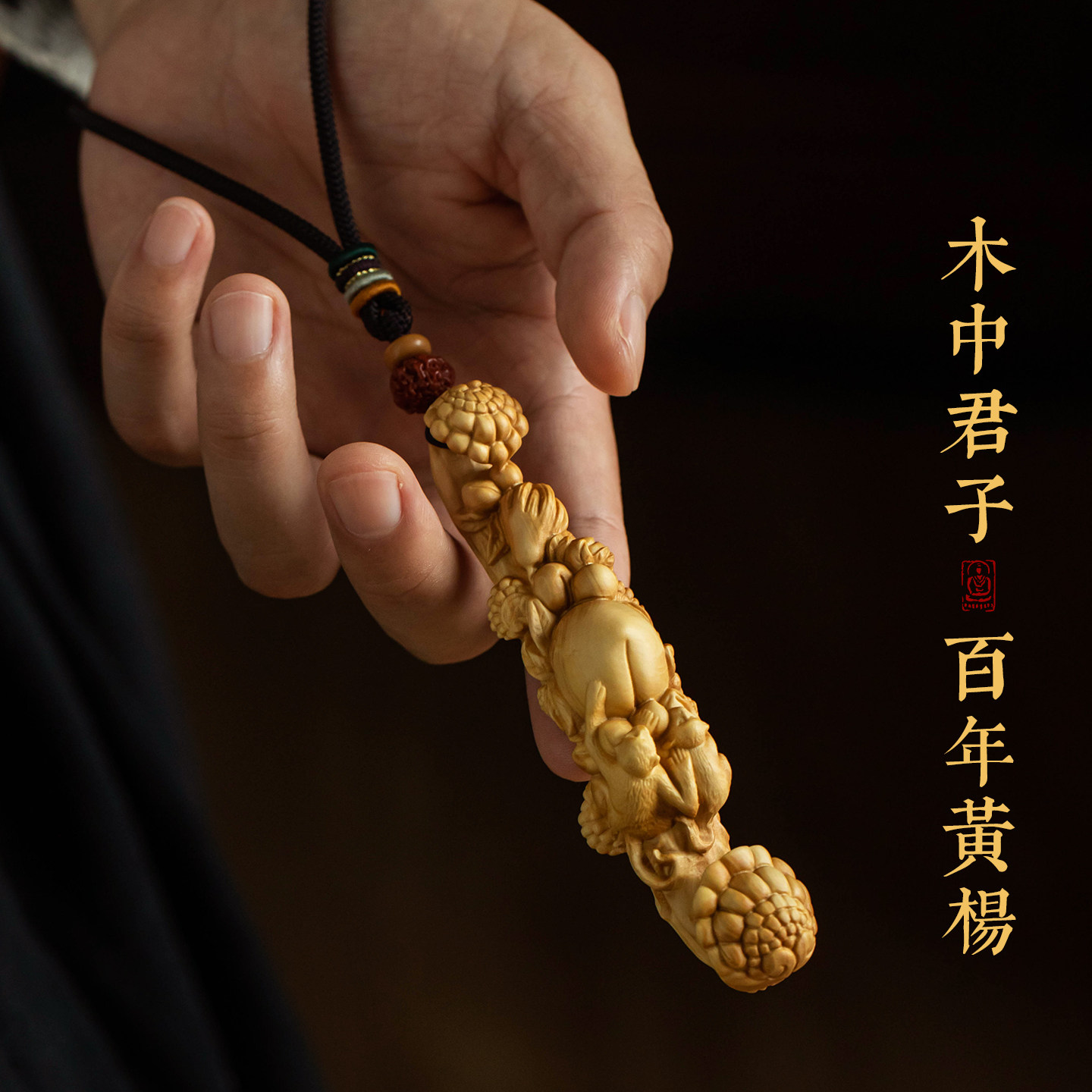 【大师手作】大善堂黄杨木雕刻创意工艺品文玩手把件寿桃如意随身