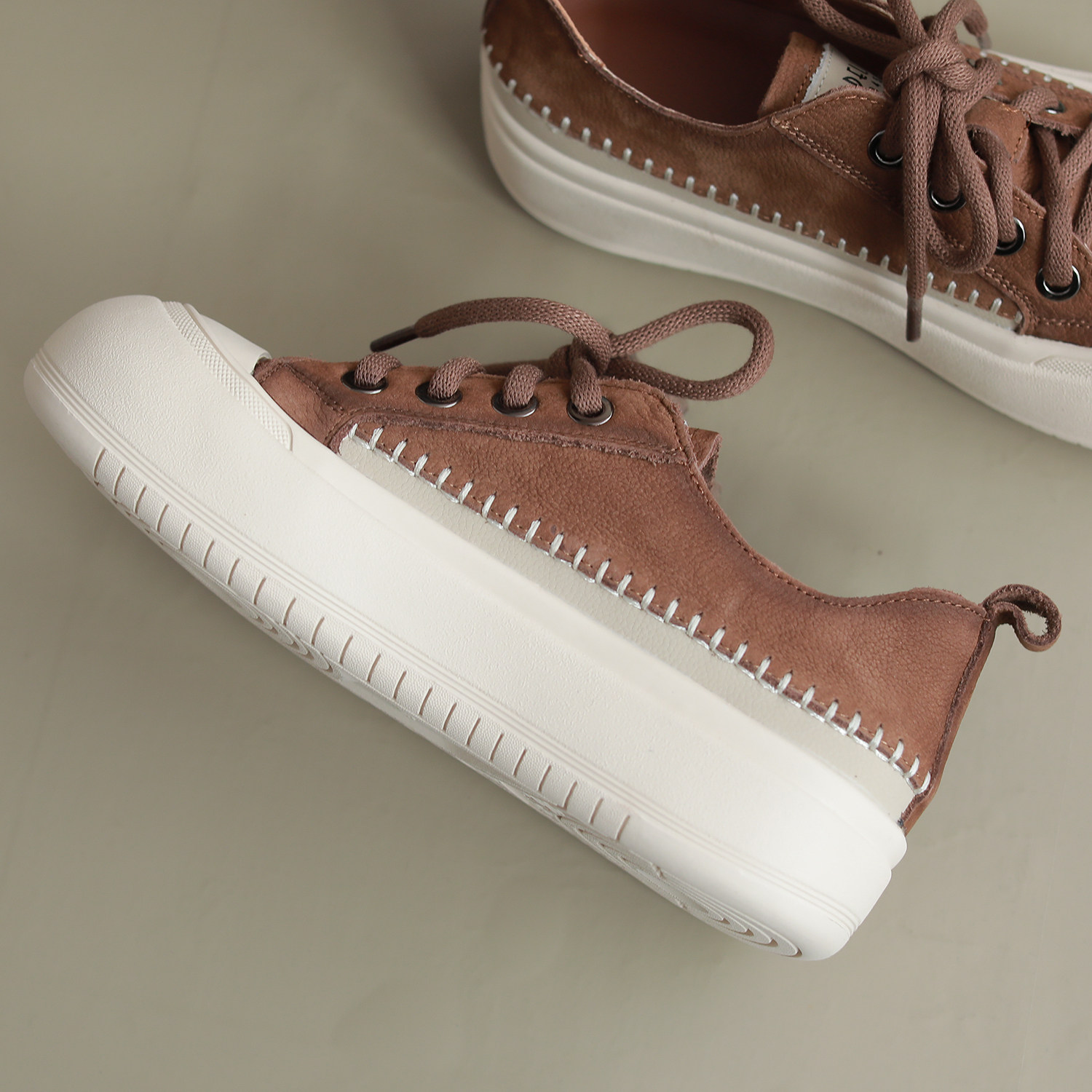 【明星同款】Wander around 复古棕色厚底增高休闲板鞋男女同款