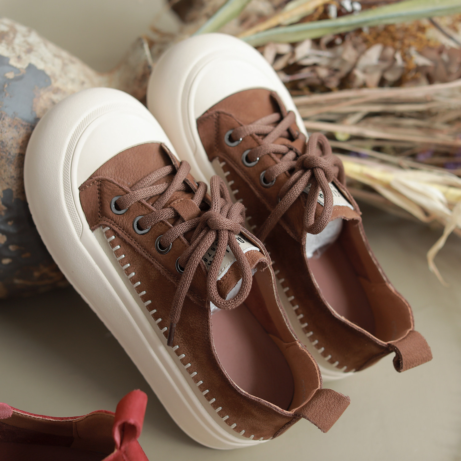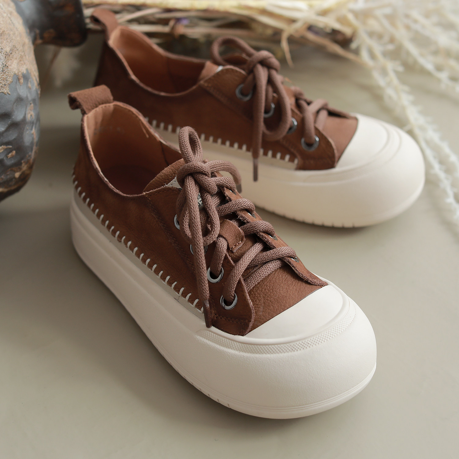 咖咪羽复古厚底板鞋头层牛皮大头丑萌休闲小众原创女鞋新款运动鞋