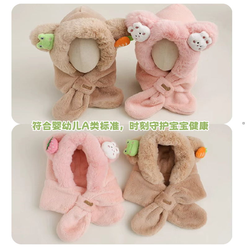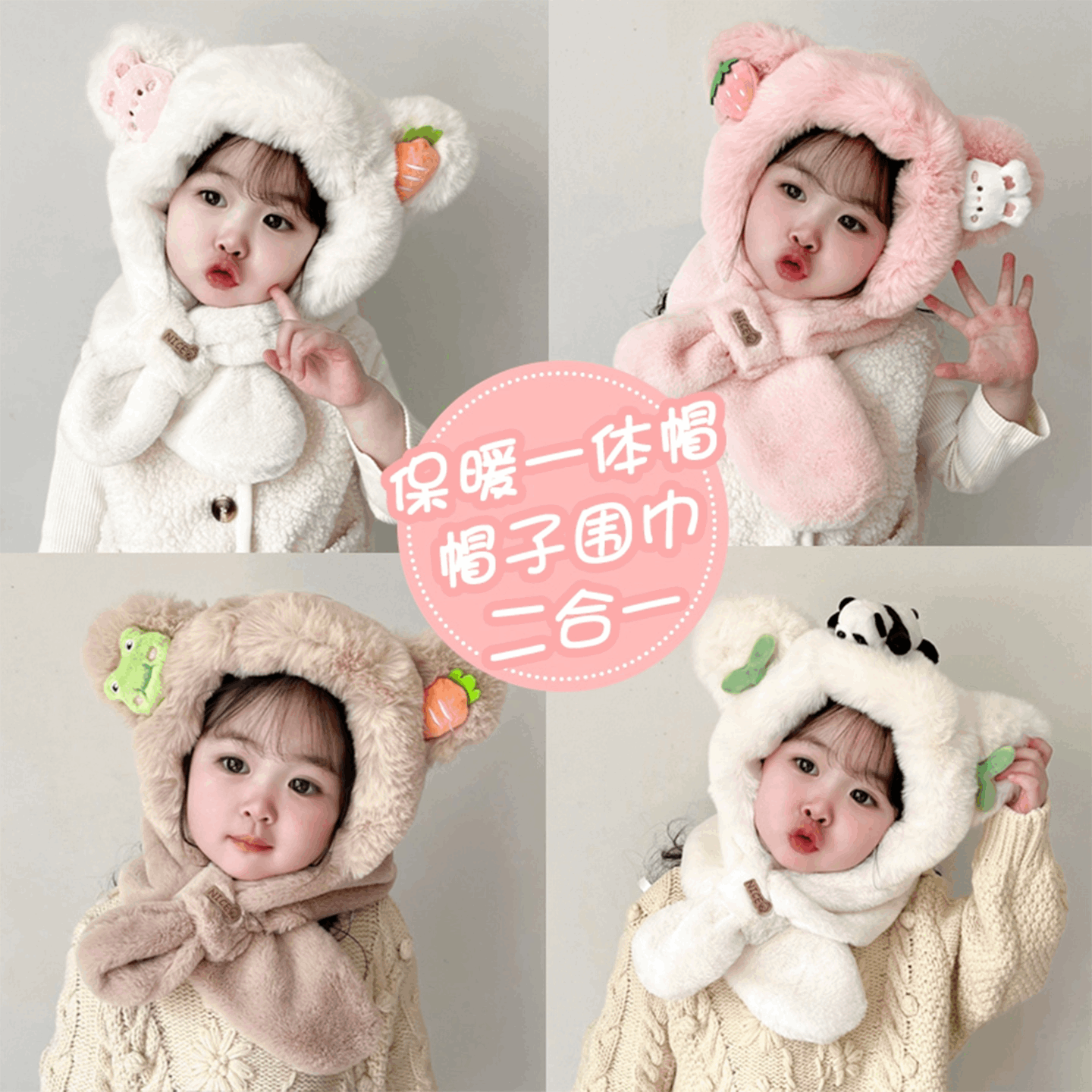 儿童冬季帽子围脖一体帽两件套婴儿可爱毛绒男女童宝宝保暖护耳厚