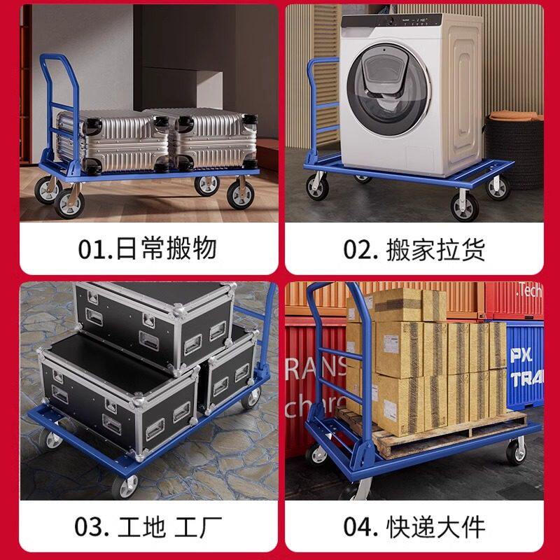 平板手推车小推车拉货四轮静音推货车可折叠搬运平板车拖车小拉车