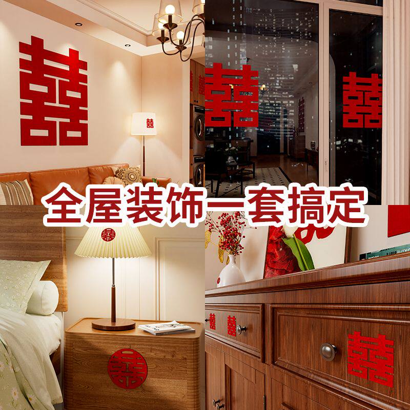 喜字结婚专用套装婚房布置装饰房门大小喜字贴红双喜卧室囍字大门