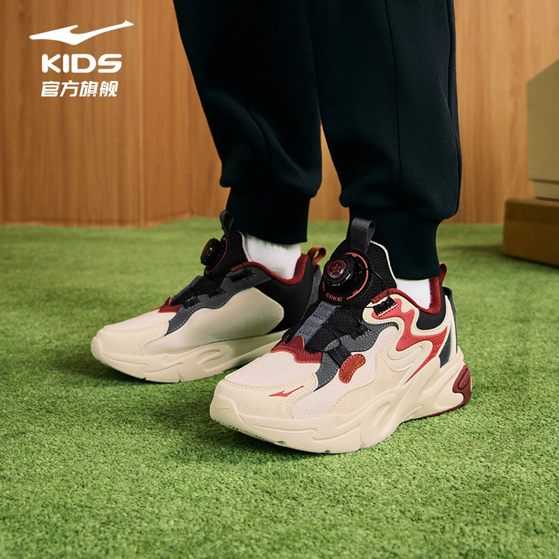 川流2|鸿星尔克童鞋男童红色秋冬运动鞋儿童旋钮新年鞋大童休闲鞋