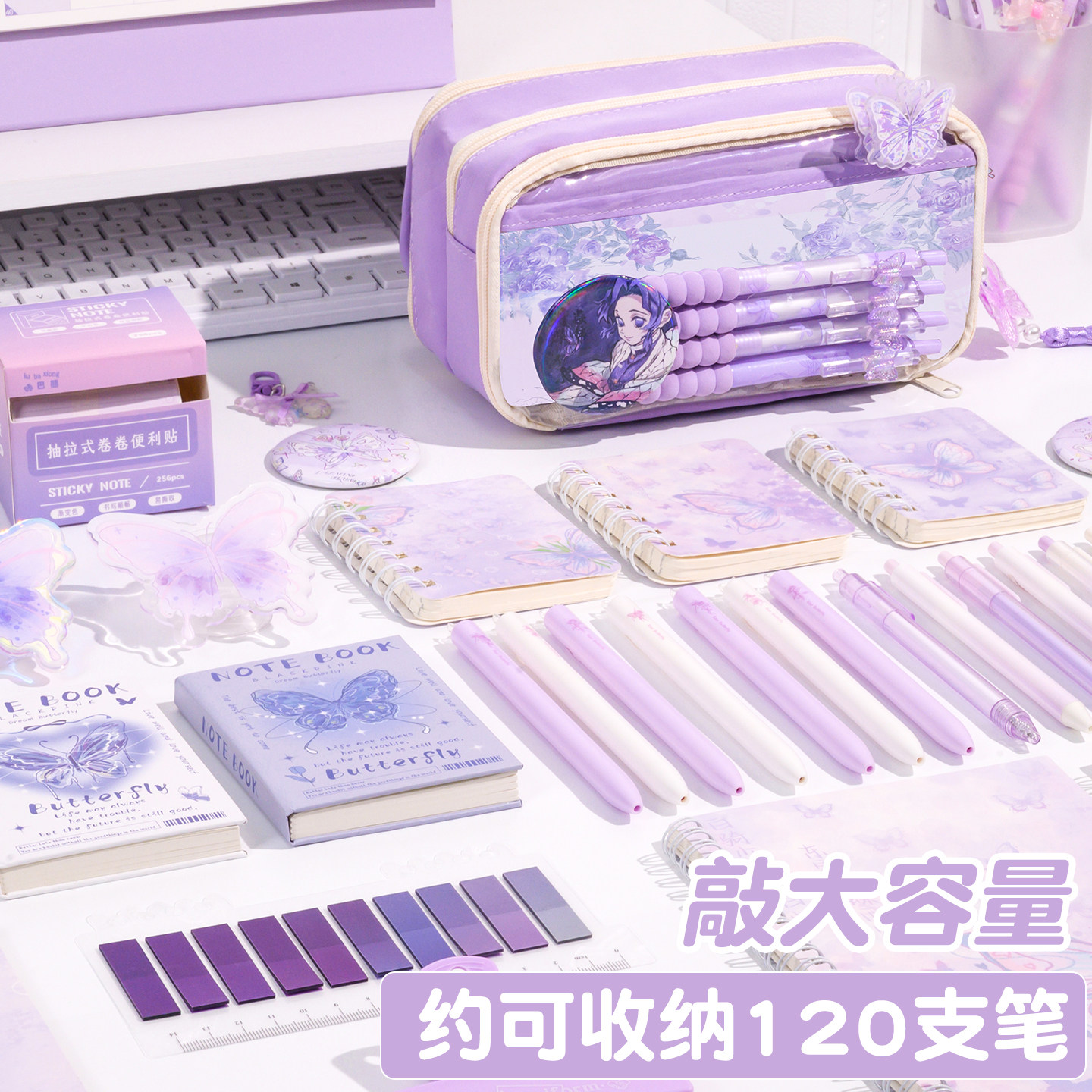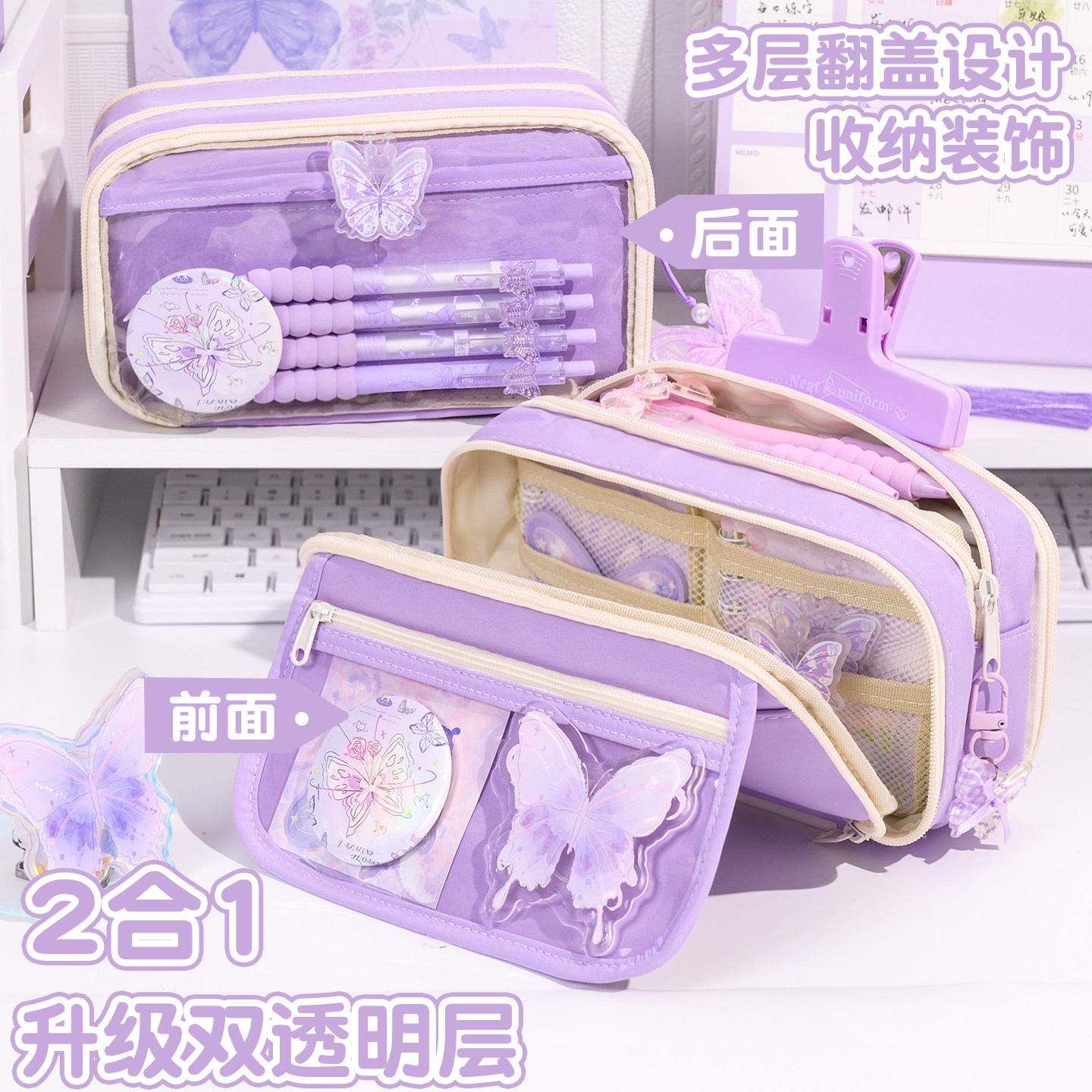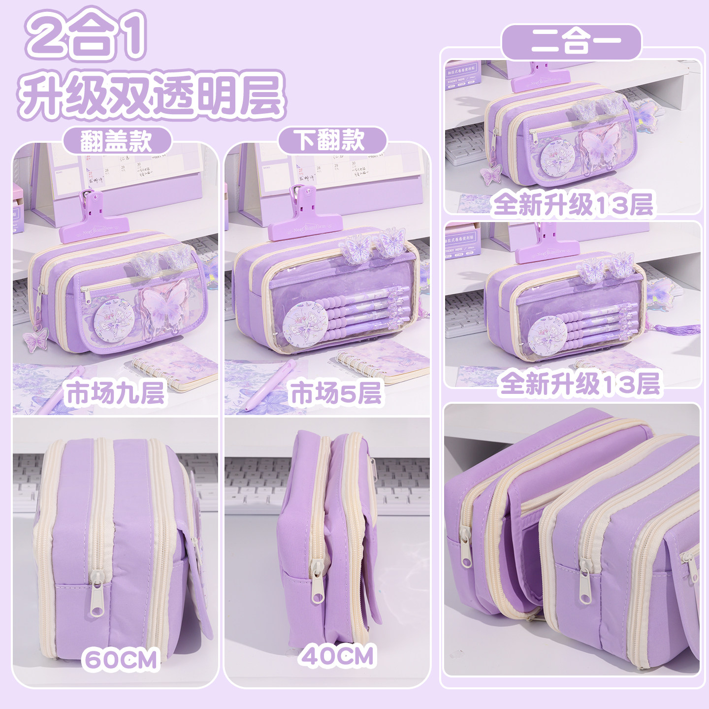 13层紫翼流光~鬼灭之刃蝴蝶忍大容量撞色笔袋女生2026新款高颜值ins风文具盒女孩款小学生透明铅笔盒文具袋哦