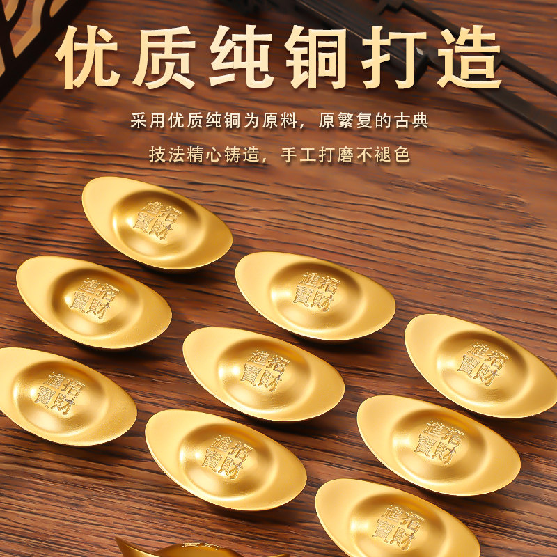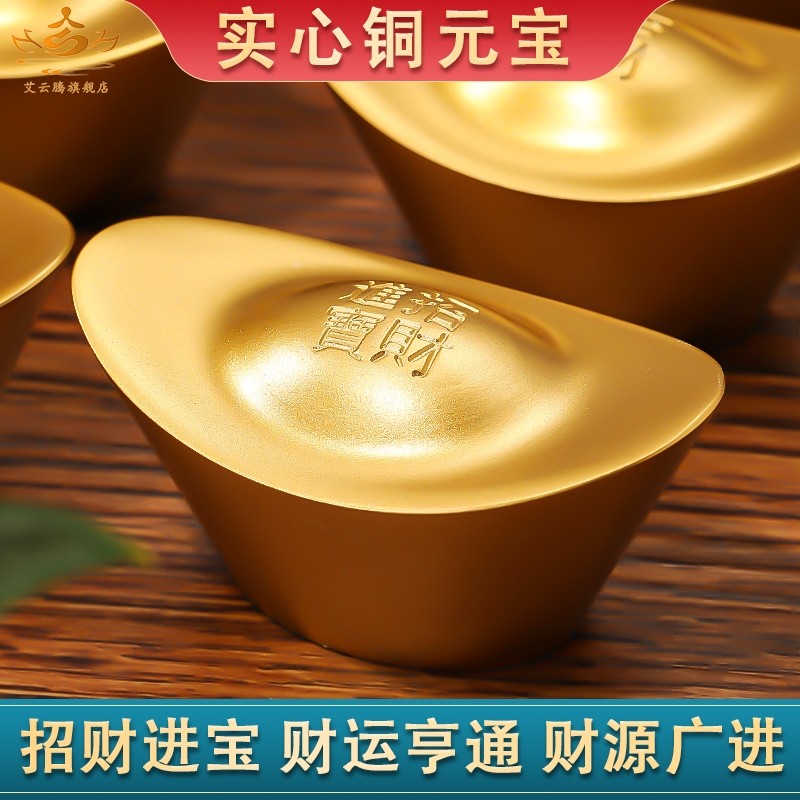 黄铜实心沙金元宝摆件道具财神客厅聚宝盆店铺装饰品开业乔迁礼品