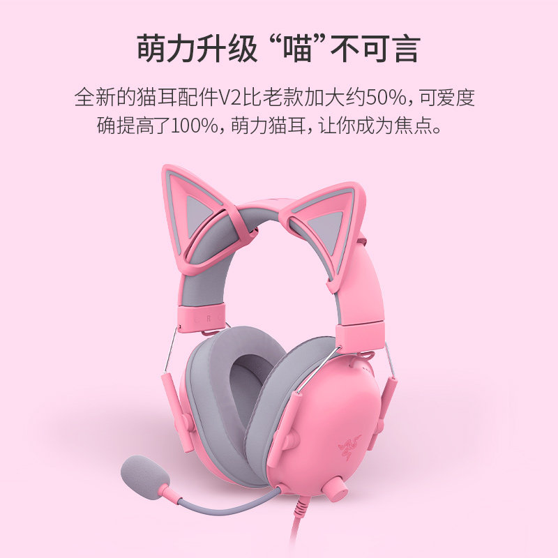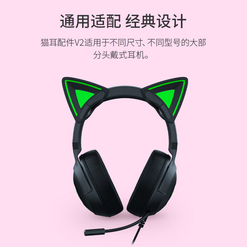 Razer雷蛇萌猫猫耳配件V2粉晶北海巨妖旋风黑鲨头戴式耳机周边