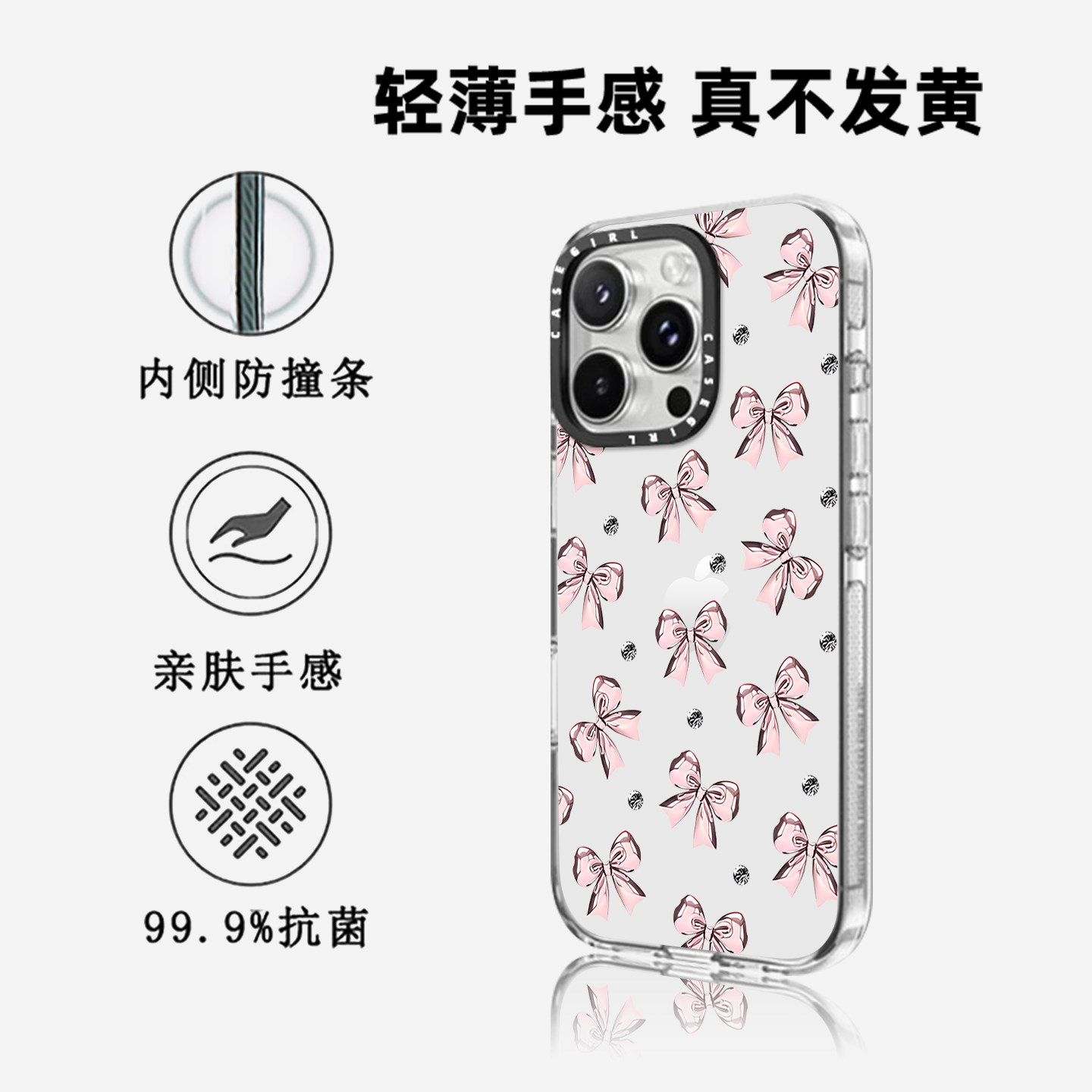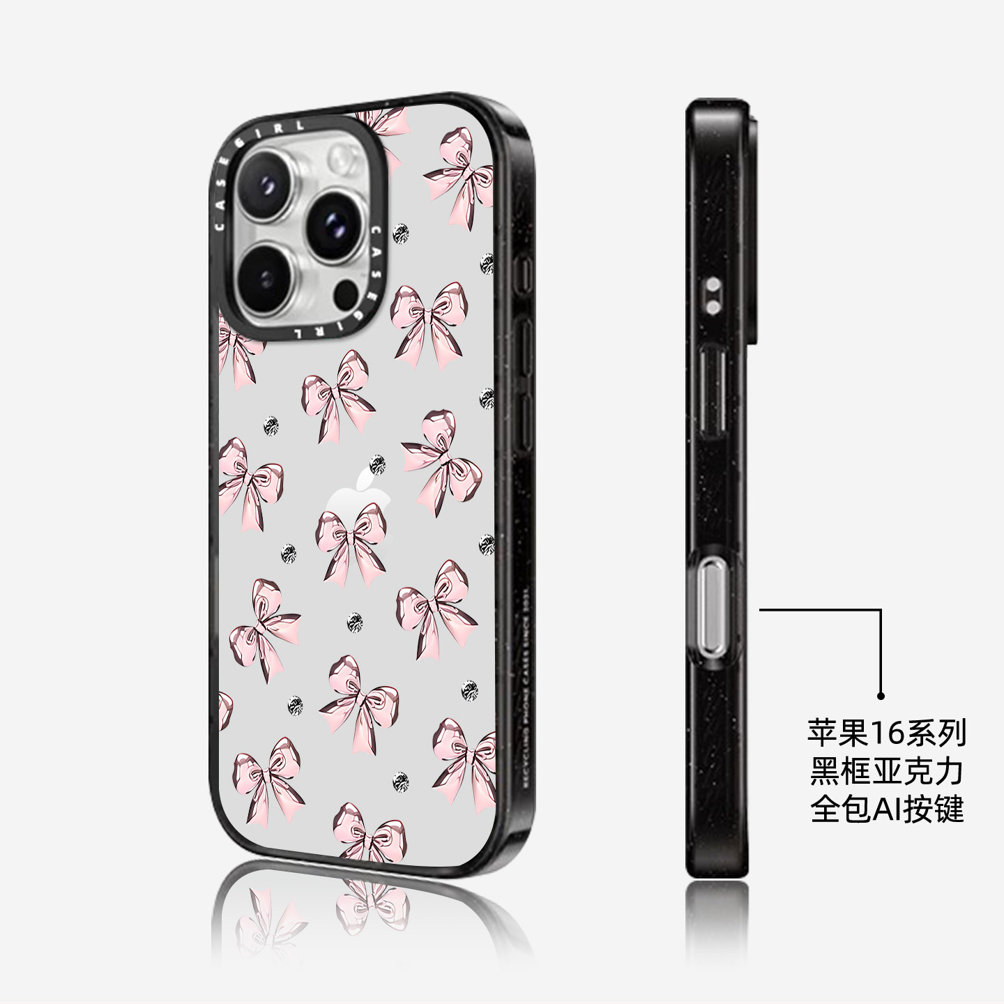 CASEGIRL金属粉丝带蝴蝶结适用苹果17ProMax手机壳iPhone16Pro相机按键全包14plus磁吸13防摔15网红11爆款12p