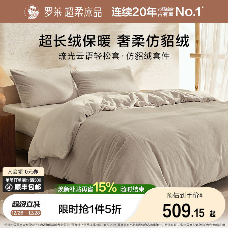 罗莱家纺秋冬宿舍仿貂绒双面暖绒A类简约床单床笠被套毯双人床