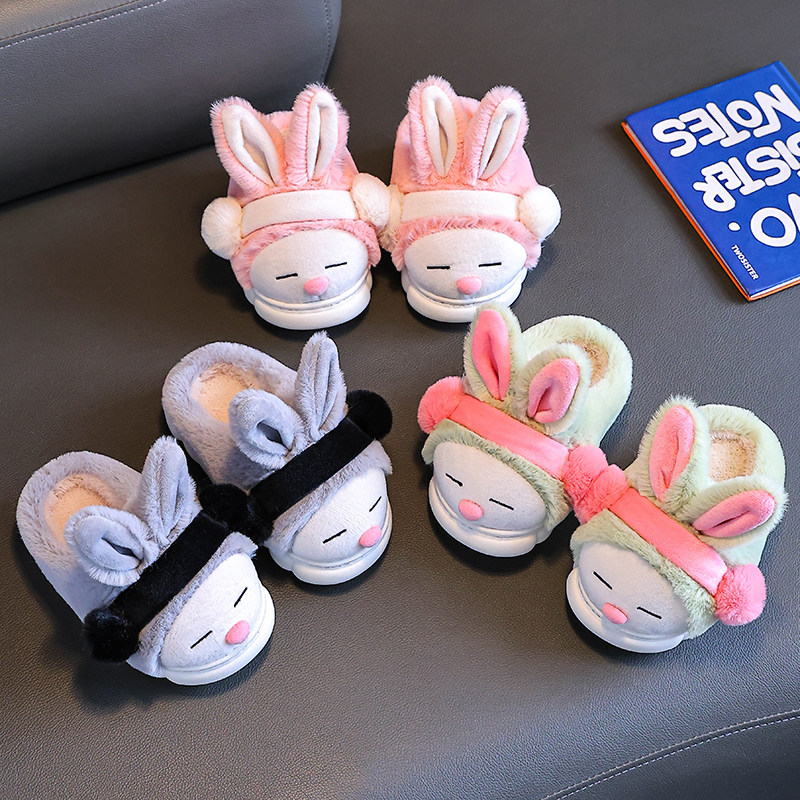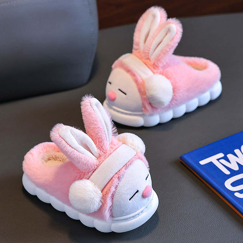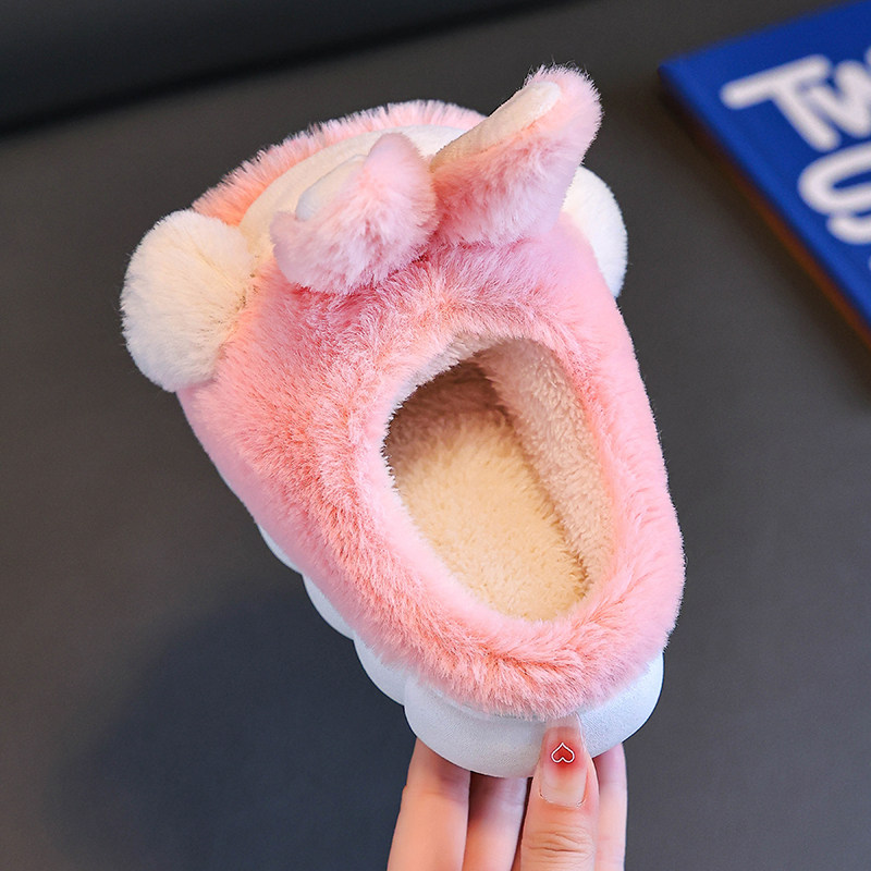 棉拖鞋男女童秋冬季家居室内女孩新款加绒厚底拖鞋儿童软底毛毛拖