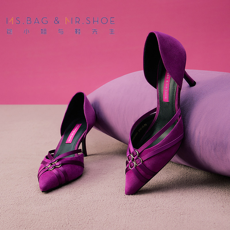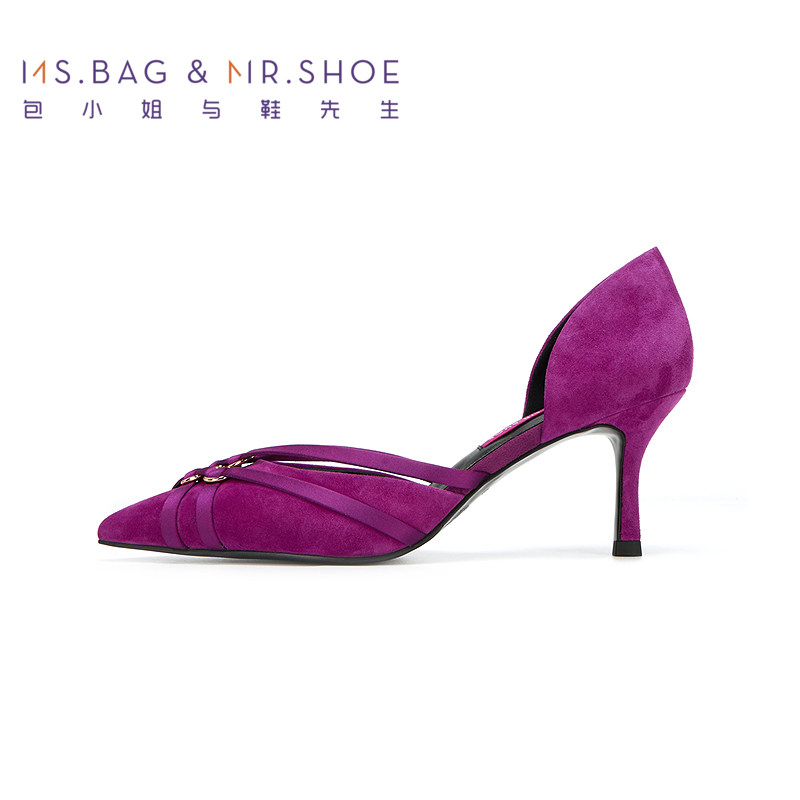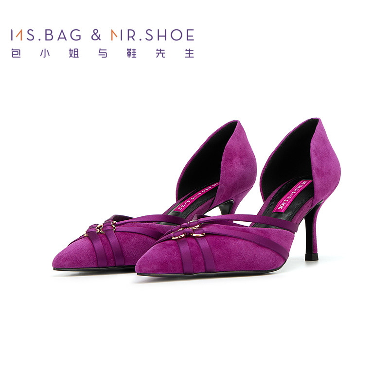 包小姐与鞋先生2025年春季新品紫色编织交叉圆环中空凉鞋女251064