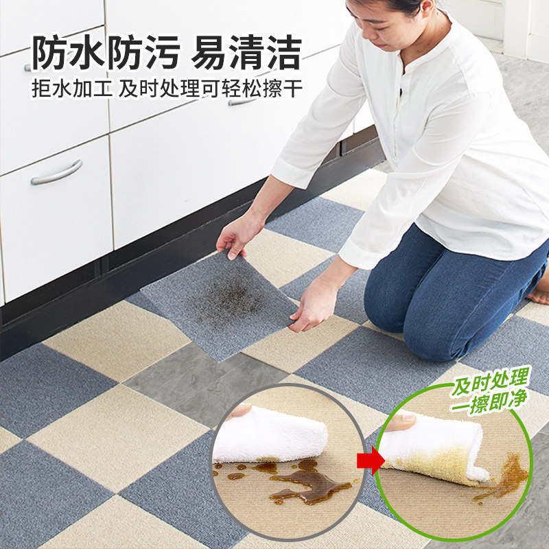 静电吸附厨房拼接地垫自由裁剪防水防油防滑防污自粘地板绿色吸水