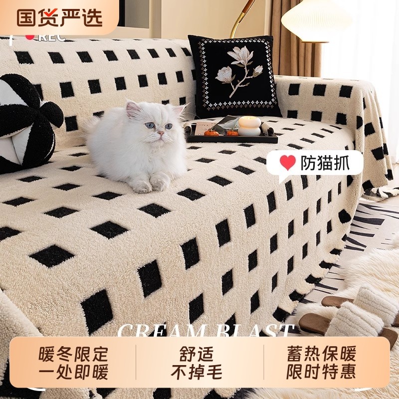 毛绒秋冬季沙发套罩2025新款全包冬季加厚保暖沙发盖布巾坐垫毯