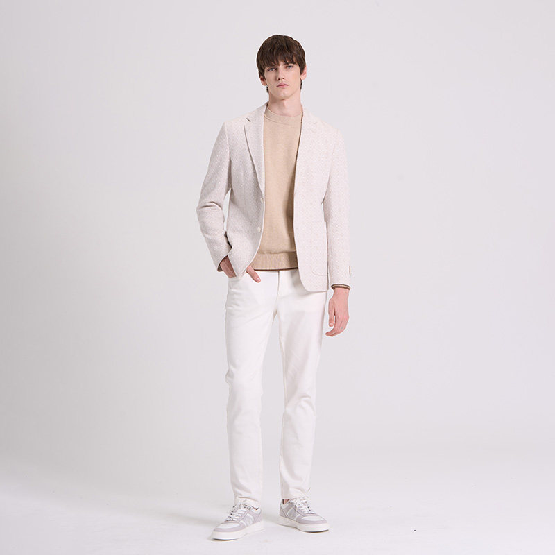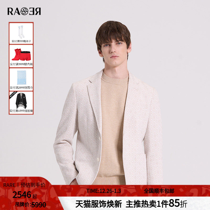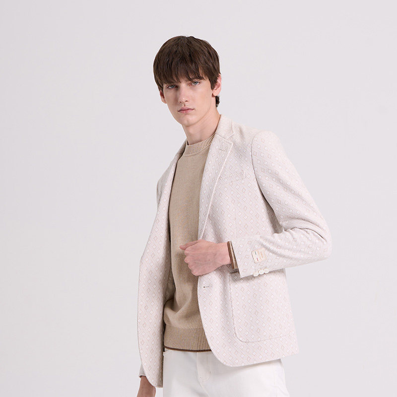 RARE威雅男装 秋冬新款浅卡其单西针织羊毛小菱形格提花便西西服