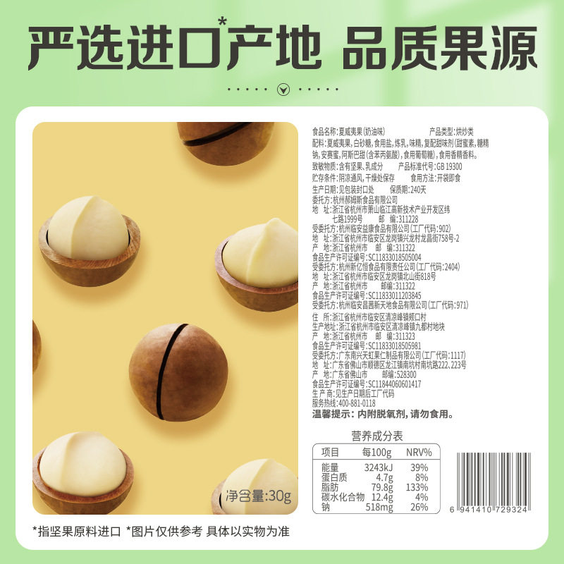 百草味夏威夷果30g奶油味干果吃货零食特产网红休闲