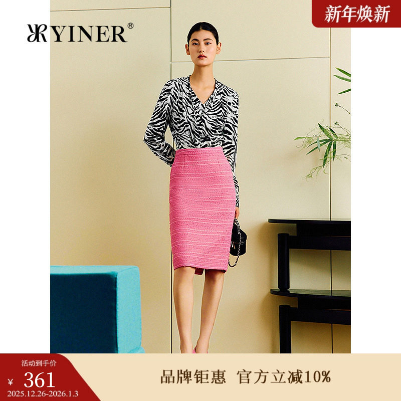 【1996系列】YINER音儿2025春季新款金葱闪丝粗花呢包臀半身裙