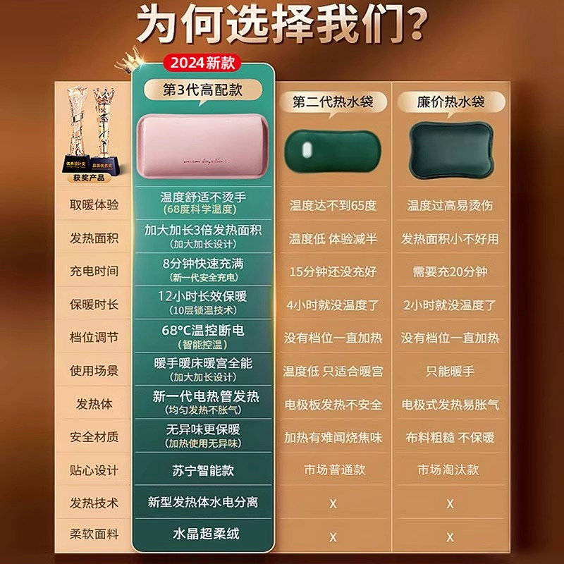 2026新款热水袋充电款暖手宝暖宝宝防爆正品电热宝暖水袋电暖袋官旗舰暖脚被窝专用暖手袋冬天取暖神器电暖宝