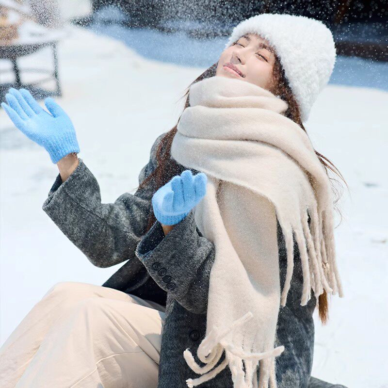 雪花双面针织围巾女秋冬季韩系氛围感加厚保暖高级感围脖复古披肩