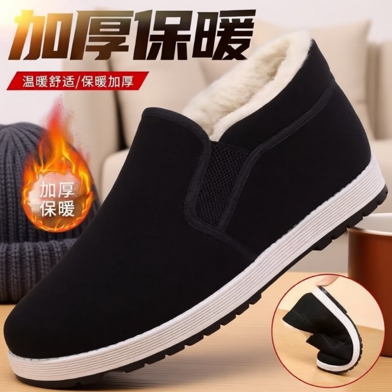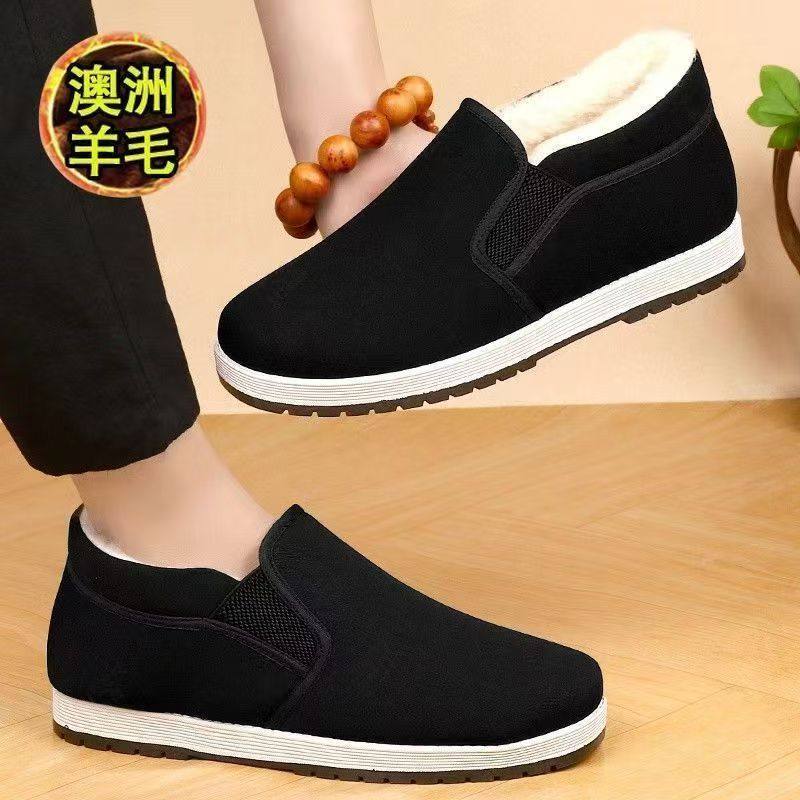 冬季加绒保暖羊毛老北京布鞋男女防滑老人新款加厚棉鞋爸爸鞋高帮