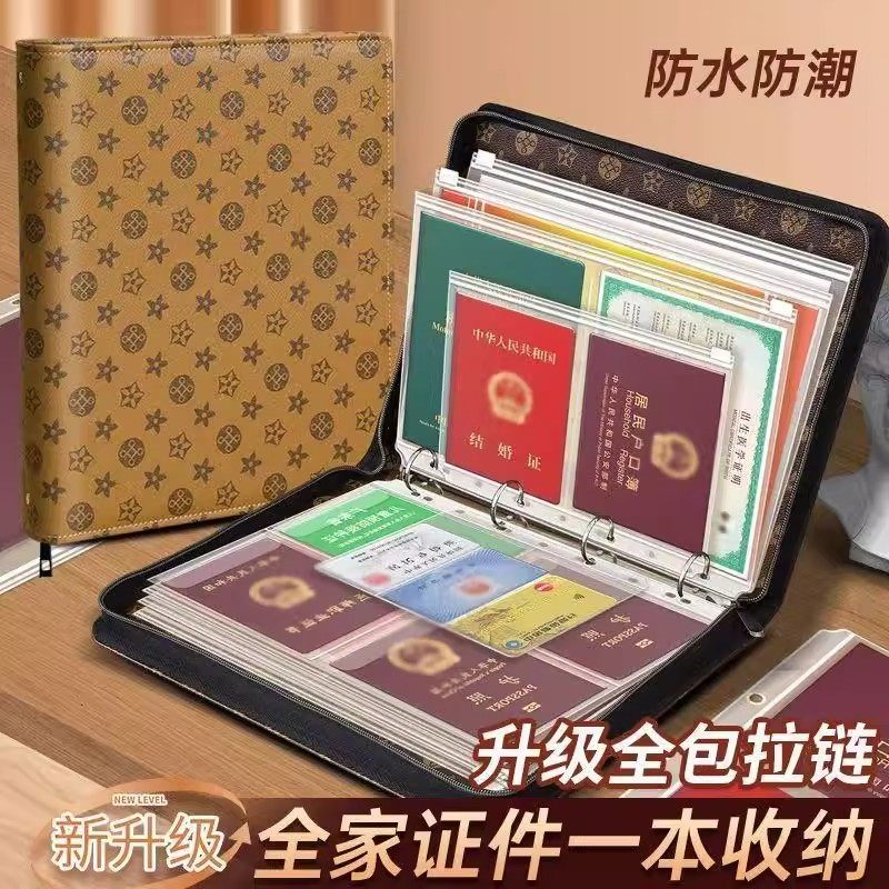 拉链款皮面家庭证件收纳包活页a4收纳册证件票据档案册房本保护套户口本疫苗本宝宝出生证明护照驾驶证活页册