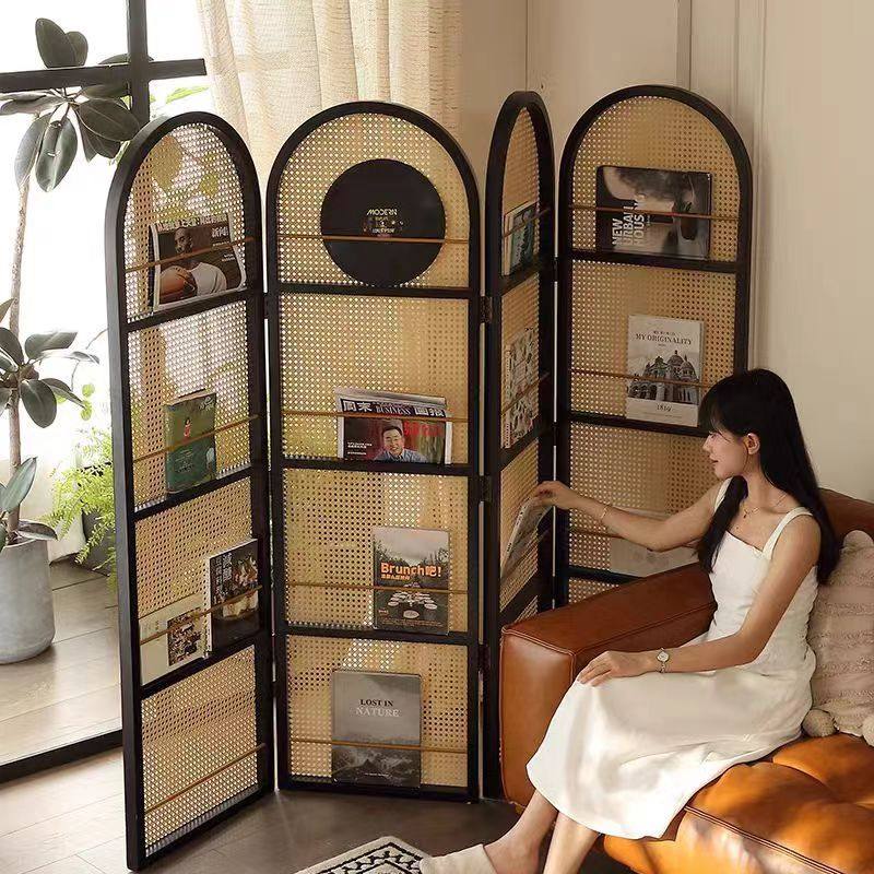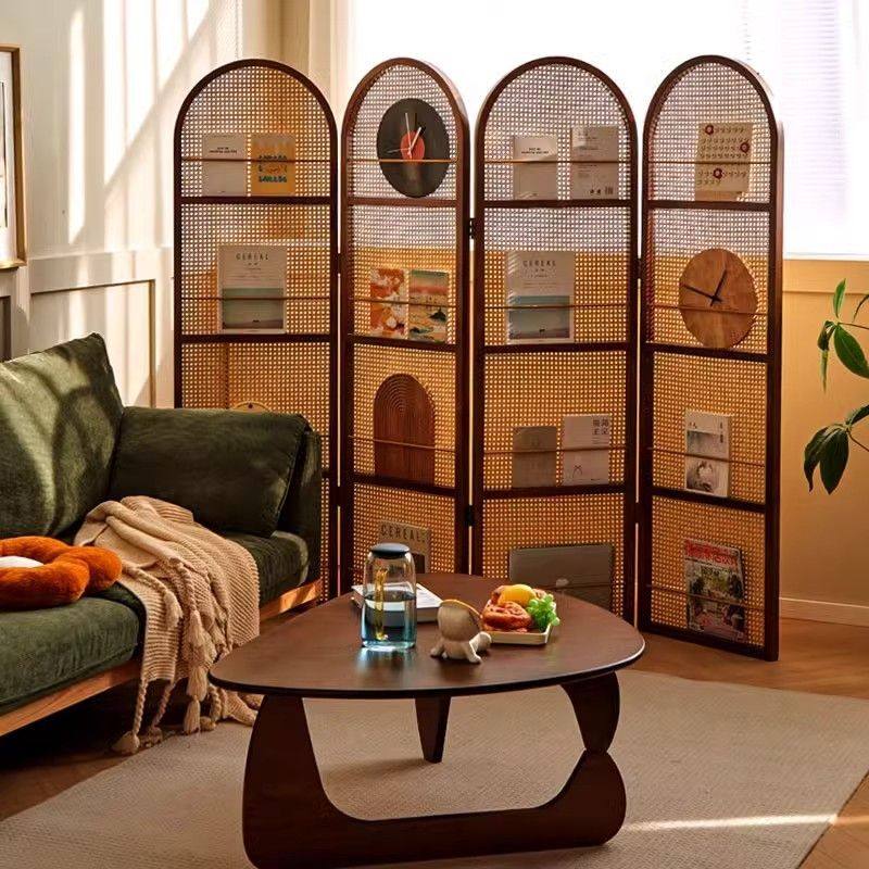 2025新客厅折叠藤编屏风美容院免打孔卧室遮挡移动屏风隔断客厅遮