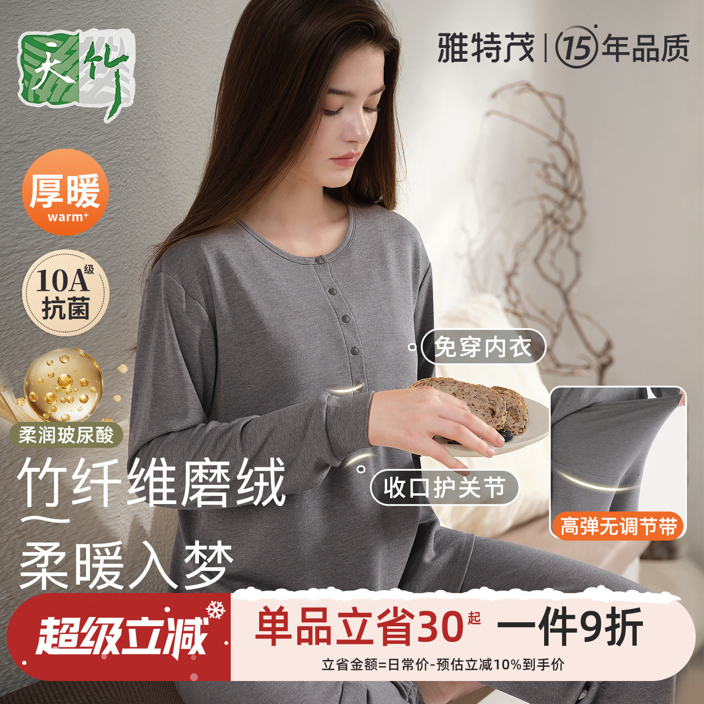 竹纤维磨绒收口丨孕妇秋冬厚秋衣秋裤套装哺乳睡衣月子服内衣女