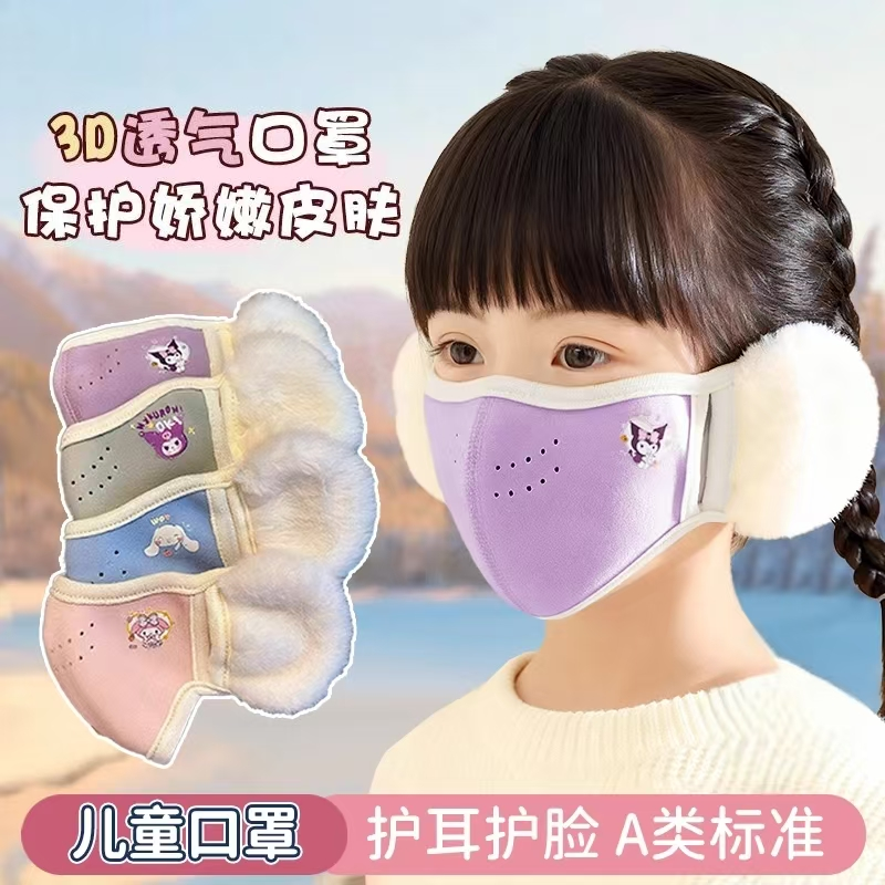 儿童保暖口罩耳罩一体男女童上学防风透气护耳秋冬防尘面罩可水洗