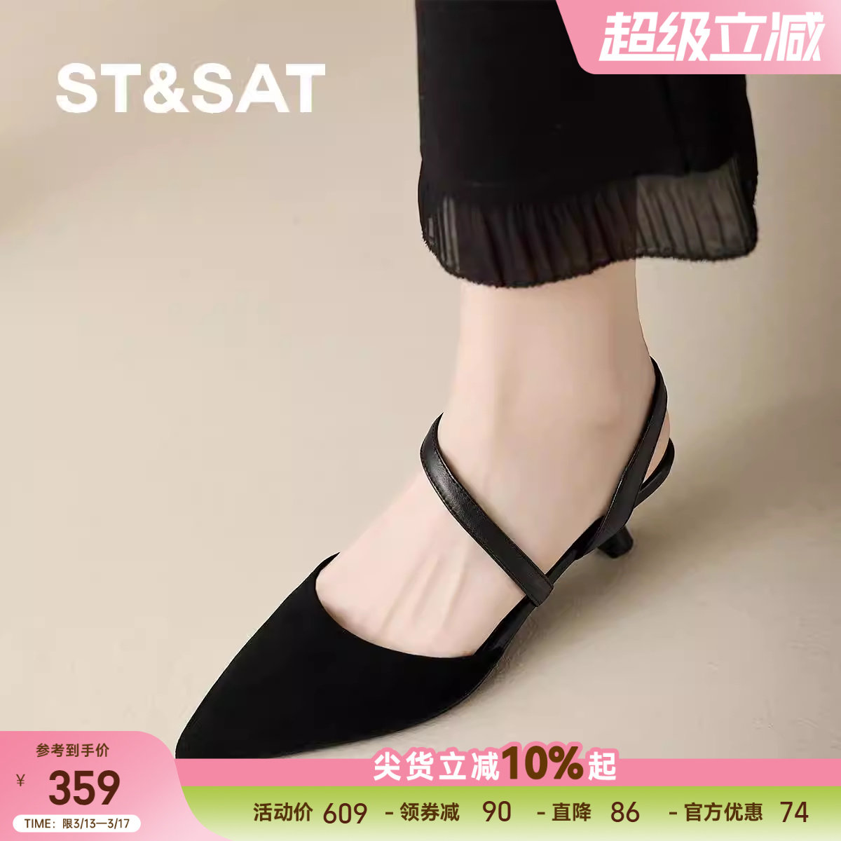 吴大叔2025秋冬时尚后空凉鞋尖头高跟鞋女气质高级不累脚漆皮女鞋