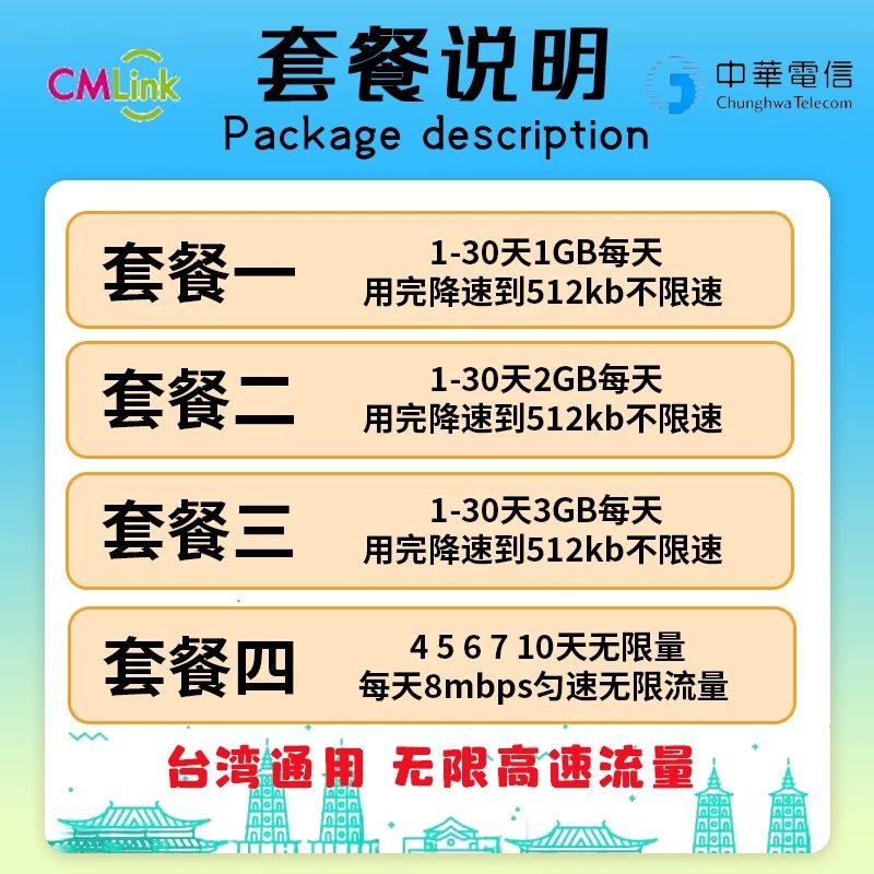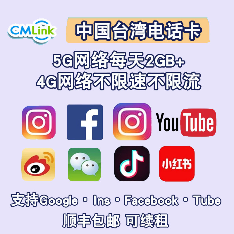 eSIM中国台湾5G电话卡无限流量高速上网虚拟卡台北高雄旅游卡