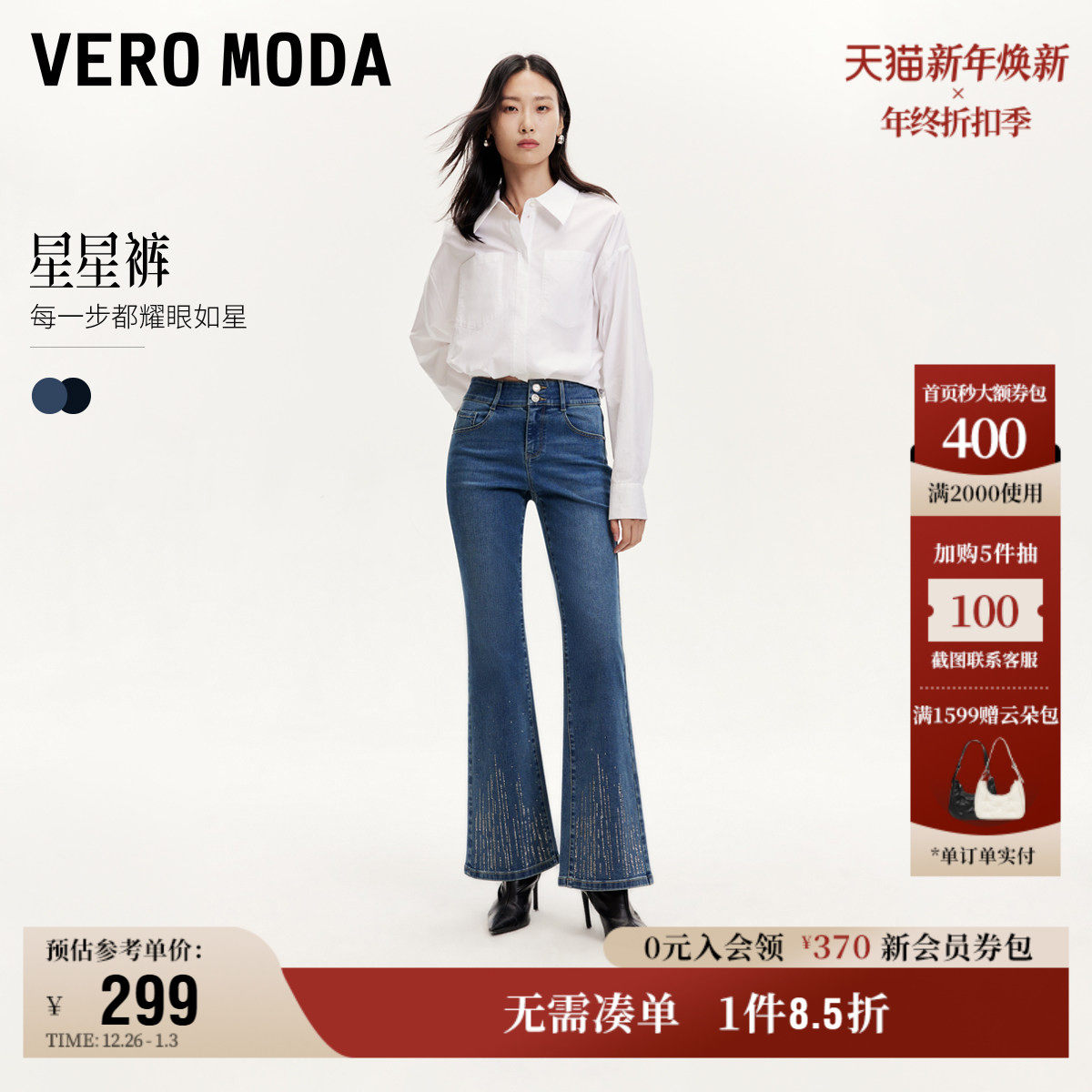 Vero Moda奥莱牛仔裤女秋冬新款星星裤高腰气质百搭微喇裤子流行