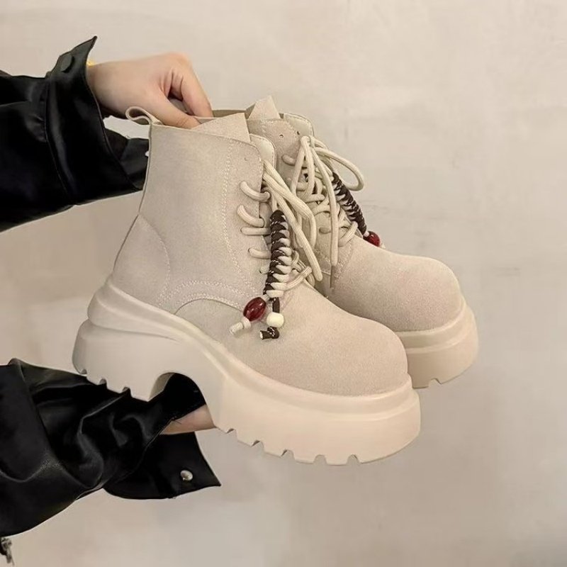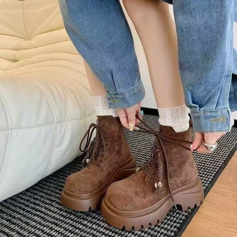 增高厚底复古女款2025新款小众方头松糕厚底jk短靴小个子马丁靴