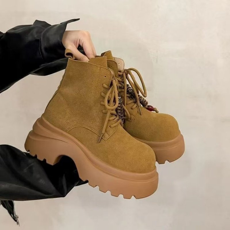 翻毛皮真牛反绒皮复古厚底大黄靴25冬季新款短靴增高马丁靴鞋子女