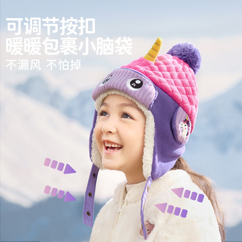 hugz儿童帽子男孩女孩保暖针织毛线帽秋冬季户外护耳防风熊仔帽子