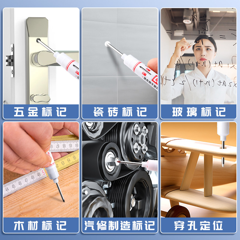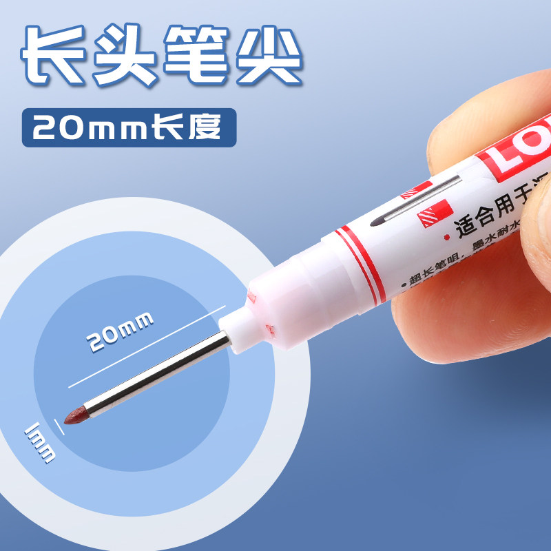 长头记号笔油性木工专用瓷砖特殊用途工地长嘴黑色深孔划线细加长画线计号笔深色板材打孔防水防油红色不掉色
