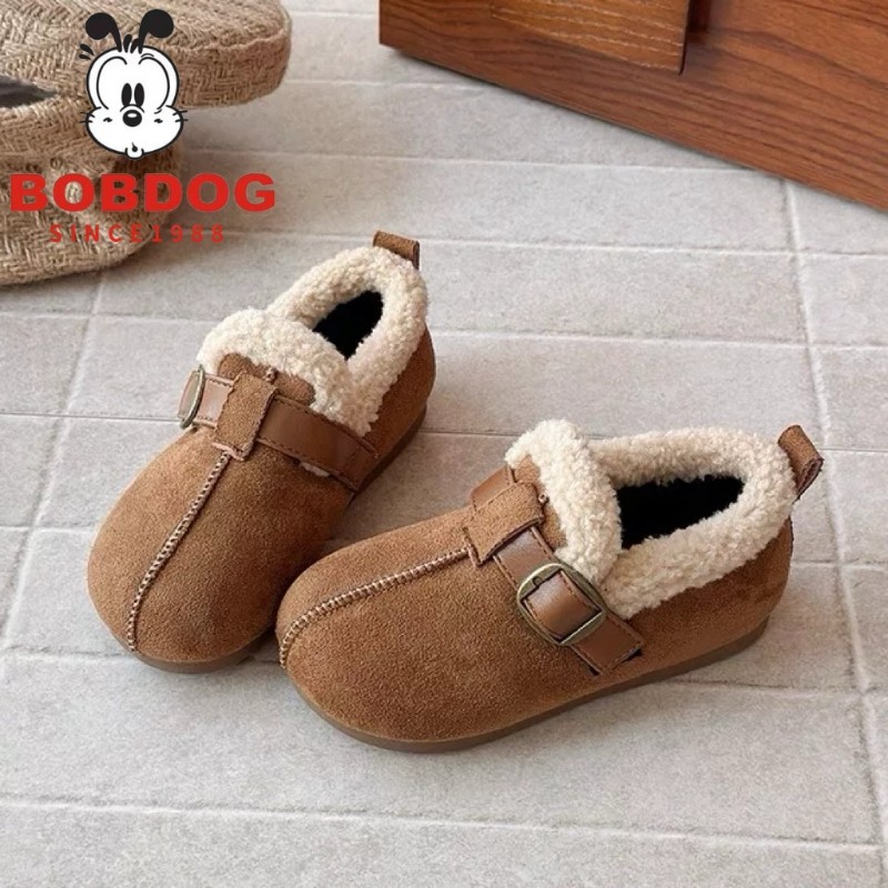 巴布豆女童勃肯鞋加绒儿童2025冬新款复古女宝宝二棉鞋毛毛豆豆鞋