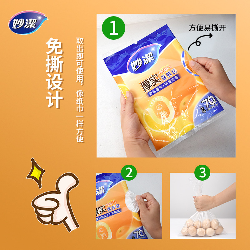 妙洁保鲜袋食品级袋子卷装背心抽取式家用大中小号厨房加厚冰箱
