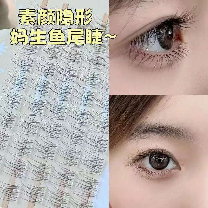 120簇新款无梗免胶懒人鱼尾假睫毛自然分段单簇日常素颜新手仿真